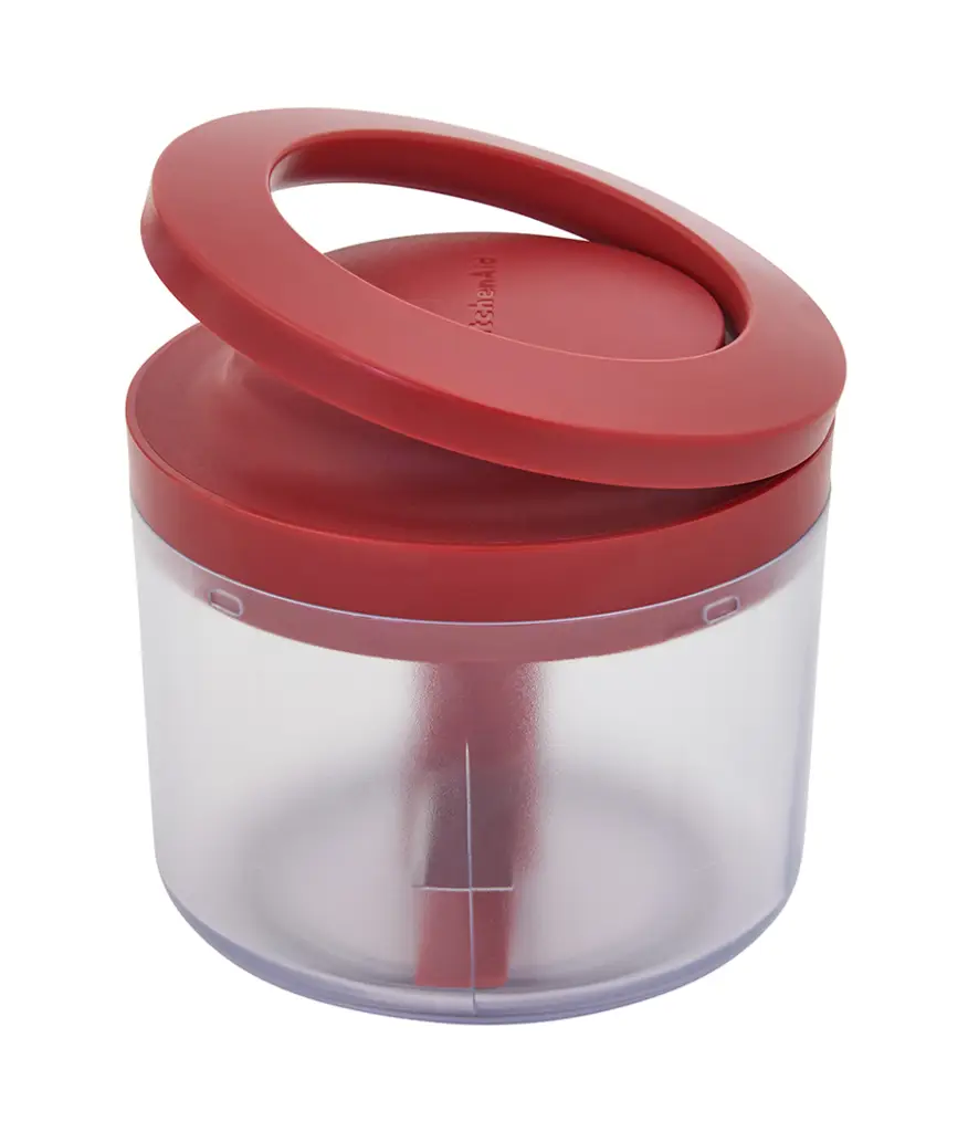 Prezentowany ręczny rozdrabniacz do warzyw w kolorze Empire Red (czerwonym) ma pojemność 720 ml i wymiary 13 x 12 cm (śr. x wys.). Wykonano go ze stali nierdzewnej i tworzywa sztucznego. Świetnie sprawdzi się do przygotowywania sałatek, sals, dipów czy dressingów pozwalając na błyskawiczne posiekanie owoców, warzyw i orzechów bez wysiłku. Rozbieracz wyposażono w praktyczny pojemnik, precyzyjne ostrza oraz pokrywkę z uchwytem ze sznurkiem - wystarczy go pociągnąć aby ostrza zaczęły się obracać - dla wygody i łatwości używania. Produkt nadaje się do częściowego mycia w zmywarce (ostrza i pojemnik), pokrywkę należy myć ręcznie, unikając zanurzania w wodzie.