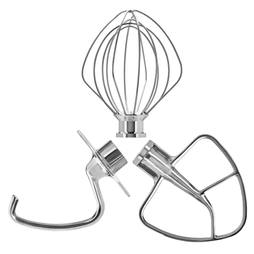 Zestaw składa się z haka do ciast drożdżowych i makaronowych, rózgi do ubijania i napowietrzania oraz mieszadła płaskiego. Został wykonany z wysokiej jakości stali nierdzewnej i nadaje się do mycia w zmywarce. Wszystkie 3 narzędzia wchodzą w skład wyposażenia modelu 185 miksera Artisan 5.