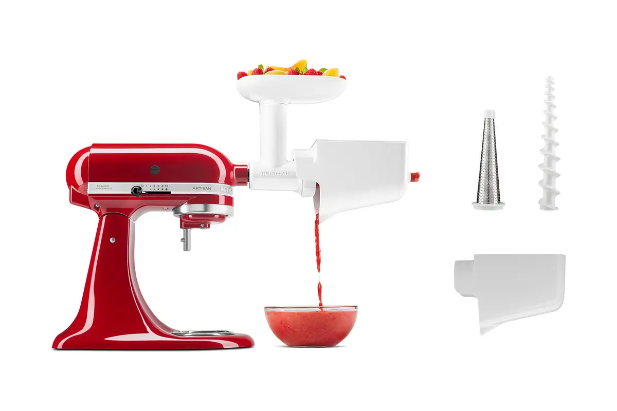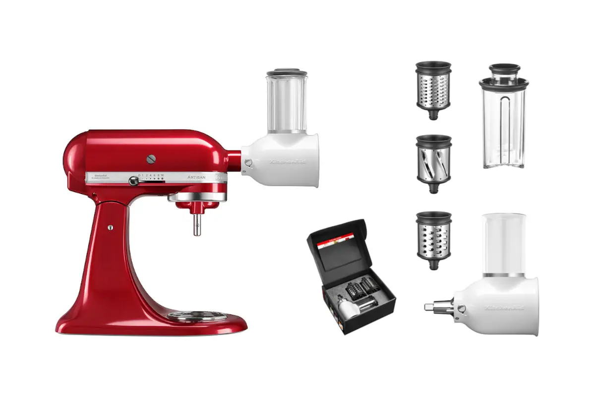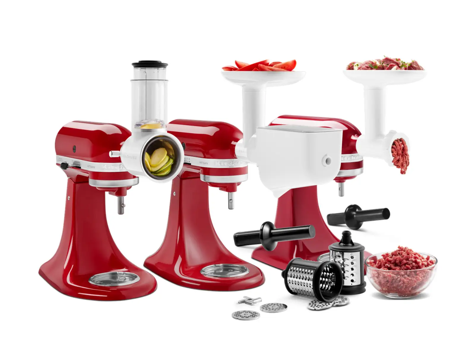 Niezwykle praktyczny zestaw składający się z maszynki do mięsa, maszynki do tarcia i szatkowania oraz akcesoriów do przecierów, pasujacych do mikserów marki Artisan. Pozwala on znacznie rozszerzyć funkcjonalność miksera zmieniając go w urządzenie do mielenia, tarcia, szatkowania, rozdrabniania i przecierania.