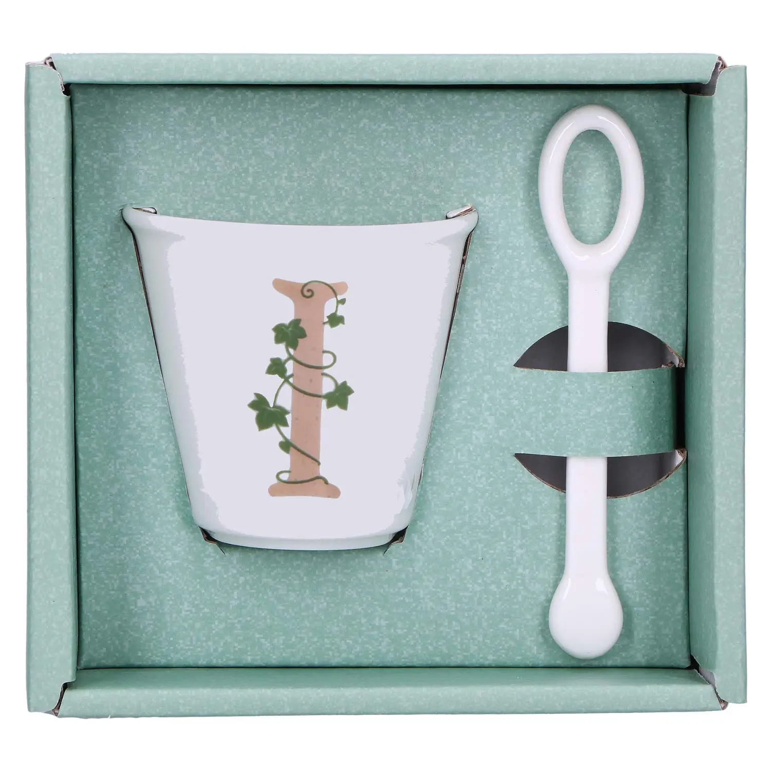 Filiżanka z łyżeczką z literą "I" o pojemności 75 ml Unico to idealny dodatek do Twojej kolekcji naczyń i doskonały sposób na spersonalizowanie swojego codziennego rytuału picia kawy lub herbaty. Stanowi również idealny pomysł na prezent.
