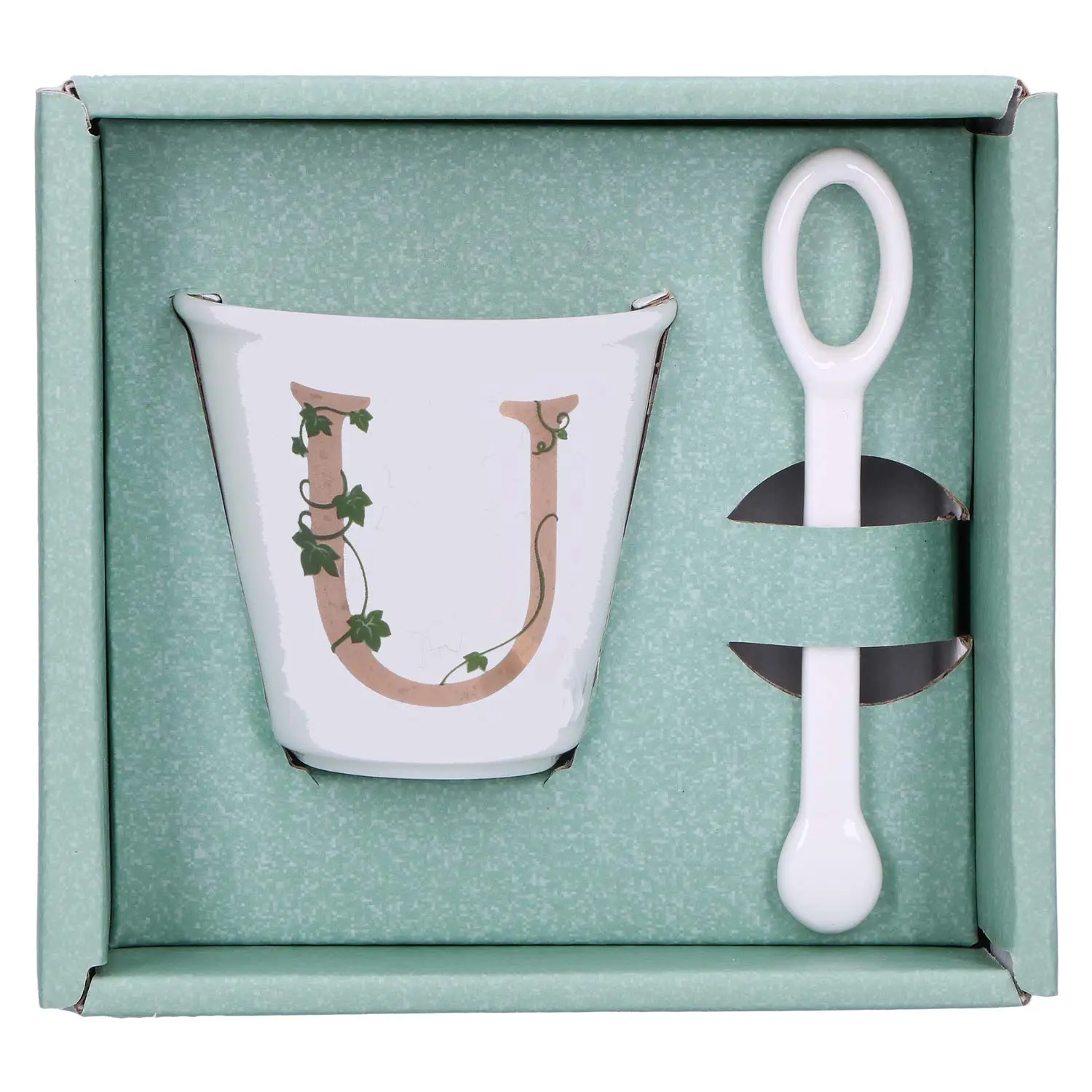 Filiżanka z łyżeczką z literą "U" o pojemności 75 ml Unico to idealny dodatek do Twojej kolekcji naczyń i doskonały sposób na spersonalizowanie swojego codziennego rytuału picia kawy lub herbaty. Stanowi również idealny pomysł na prezent.