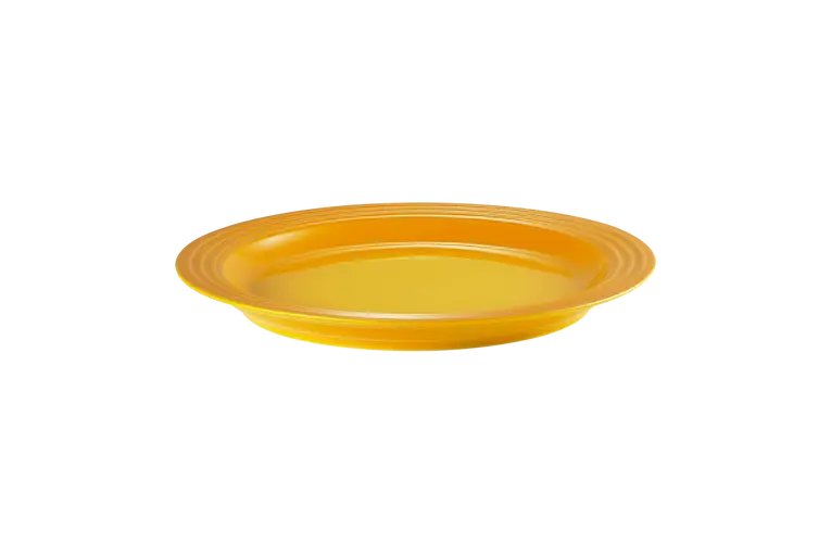 Duży talerz marki Le Creuset wykonany jest z kamionki. Ma 27 cm średnicy. Świetnie nadaje się do serwowania dań obiadowych czy przystawek. Szeroki wybór kolorów sprawia, że Twój stół nabierze pięknego charakteru. Talerz ma nieco zagłębioną podstawę, dzięki temu płyny nie będą się wylewały. Charakterystyczny design z trzema pierścieniami na krawędzi idealnie komponuje się z innymi naczyniami marki.
