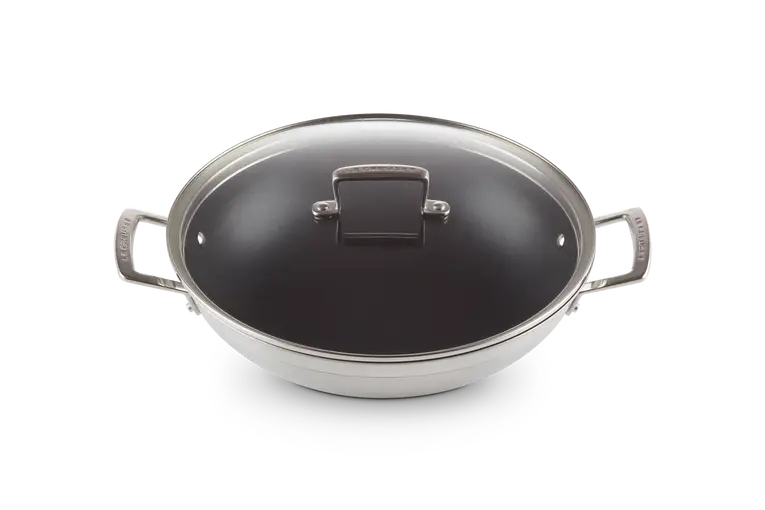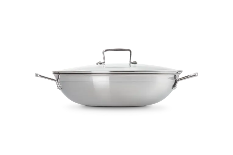 Le Creuset - 3-ply wok ze Szklaną pokrywką stal nierdzewna nieprzywierająca 30 cm