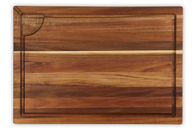 Deska do krojenia Le Creuset wykonana jest z naturalnego drewna akacjowego. Jej imponujące wymiary 50 × 35 × 4,5 cm sprawiają, że doskonale nadaje się do krojenia dużych kawałków mięsa, takich jak steki czy pieczenie. Wyposażona w głębokie rowki na soki, skutecznie zapobiega rozlewaniu się płynów na blat, utrzymując czystość podczas pracy. Każda deska posiada unikalny układ słojów i odcień, co czyni ją wyjątkową ozdobą każdej kuchni.