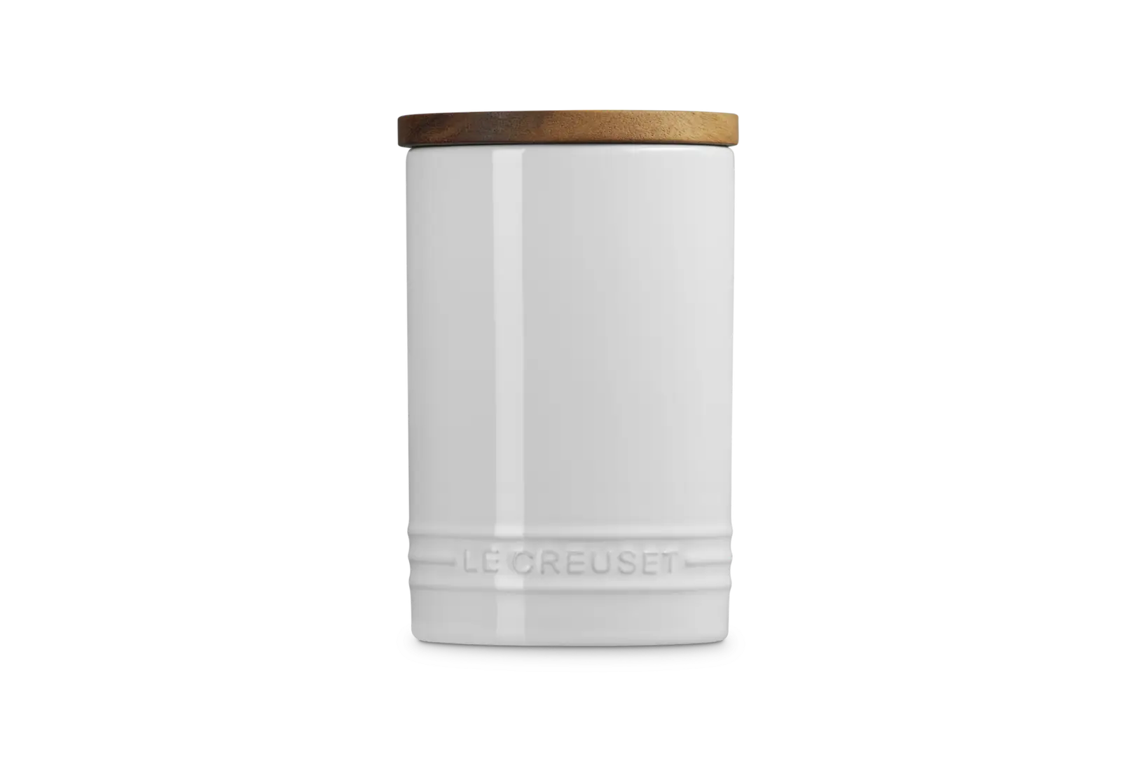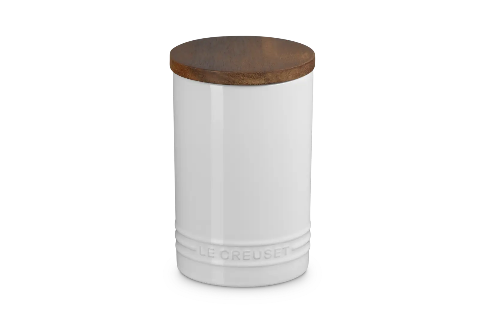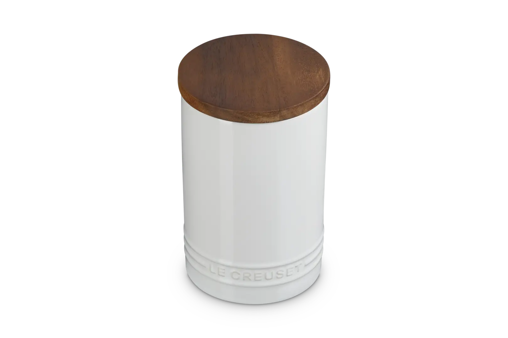 Pojemnik kuchenny marki Le Creuset o pojemności 0,77 L to praktyczny i stylowy sposób na przechowywanie codziennych produktów. Solidna konstrukcja została uzupełniona o elegancką akacjową pokrywkę z silikonową uszczelką, która skutecznie chroni zawartość przed wilgocią i utratą aromatu. To doskonałe miejsce na kawę, herbatę, cukier czy ulubione przekąski. Model należy do kolekcji obejmującej także inne rozmiary, dzięki czemu z łatwością dopasujesz zestaw do swoich potrzeb. Ustawiony na blacie nie tylko zapewnia dodatkową przestrzeń do przechowywania, ale też dodaje wnętrzu subtelnego, naturalnego charakteru charakterystycznego dla marki Le Creuset.