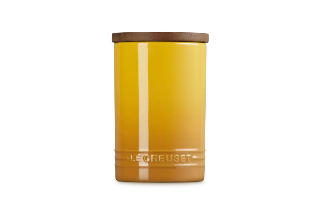 Pojemnik kuchenny marki Le Creuset o pojemności 0,77 L to praktyczny i stylowy sposób na przechowywanie codziennych produktów. Solidna konstrukcja została uzupełniona o elegancką akacjową pokrywkę z silikonową uszczelką, która skutecznie chroni zawartość przed wilgocią i utratą aromatu. To doskonałe miejsce na kawę, herbatę, cukier czy ulubione przekąski. Model należy do kolekcji obejmującej także inne rozmiary, dzięki czemu z łatwością dopasujesz zestaw do swoich potrzeb. Ustawiony na blacie nie tylko zapewnia dodatkową przestrzeń do przechowywania, ale też dodaje wnętrzu subtelnego, naturalnego charakteru charakterystycznego dla marki Le Creuset.