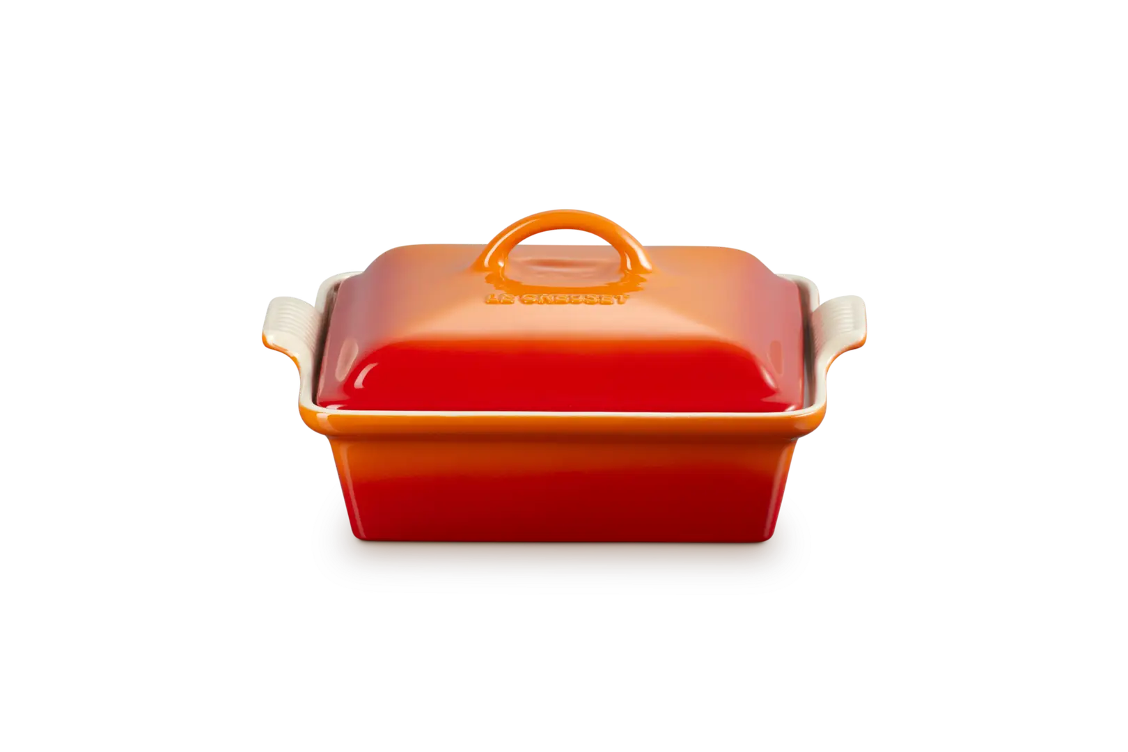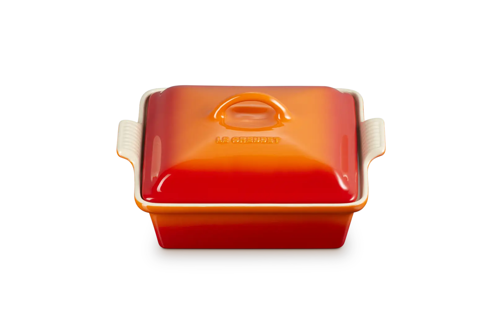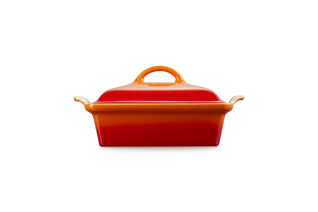 Le Creuset - Kwadratowa Forma do Pieczenia z Pokrywką Kamionka płomienny