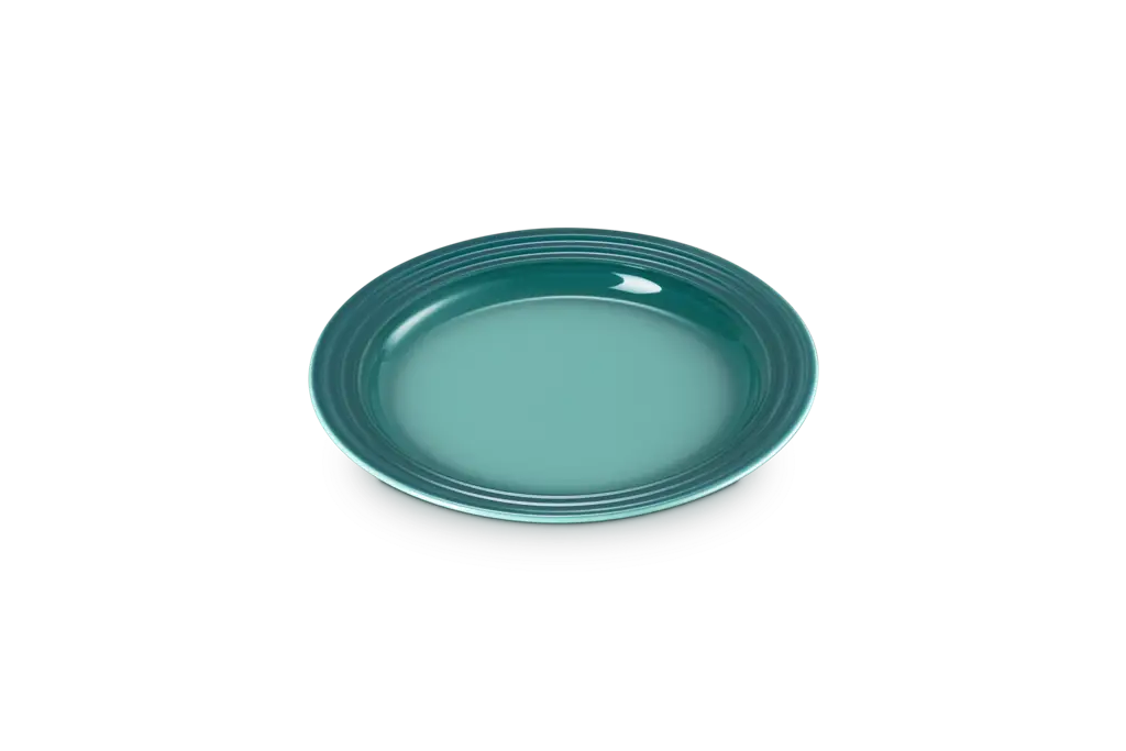 Mały talerz marki Le Creuset idealnie sprawdzi się do serwowania przystawek, śniadań czy deserów. Posiada zagłębioną podstawę, dzięki czemu wszystkie płyny pozostają na swoim miejscu. Charakterystyczny design z trzema pierścieniami na rancie sprawia, że talerz komponuje się z innymi naczyniami marki. Jest trwały i wytrzymały. Wykonany z wysokiej jakości kamionki. Talerzyk ma 22 cm średnicy.