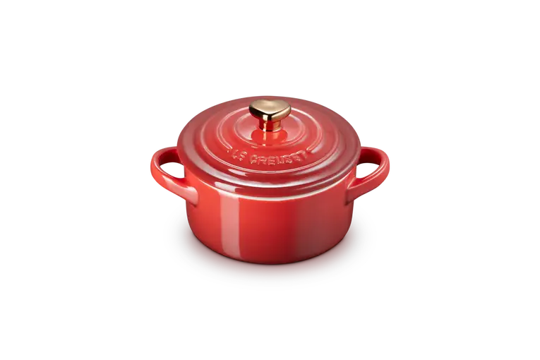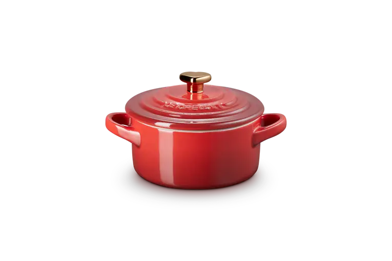 Le Creuset - Mini Cocotte ze Złotą Gałką w Kształcie Serca Kamionka wiśniowy