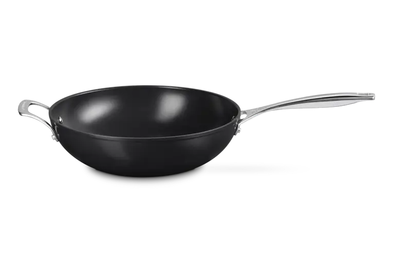 Wok o klasycznym kształcie marki Le Creuset z powłoką ceramiczną. Ma 30 cm średnicy. Nieprzywierająca powłoka ceramiczna wykonana jest bez PFAS. Pozwala na zdrowe smażenie, również bez użycia tłuszczu. Świetnie sprawdzi się do przygotowywania azjatyckich potraw.