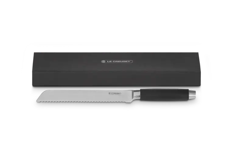 Nóż do chleba marki Le Creuset pokroi każdy bochenek z precyzją i łatwością. Dzięki ząbkowanemu ostrzu o długości 20 cm z łatwością poradzi sobie z pieczywem każdego rodzaju – od świeżej bagietki po rustykalny chleb na zakwasie. Wysokiej jakości stal nierdzewna gwarantuje trwałość, ostrość i odporność na korozję. Specjalnie zaprojektowane ząbki tną bez miażdżenia miękiszu, pozostawiając idealnie równe kromki. Czarny, ergonomiczny uchwyt z tworzywa sztucznego zapewnia stabilny chwyt i wygodę użytkowania.