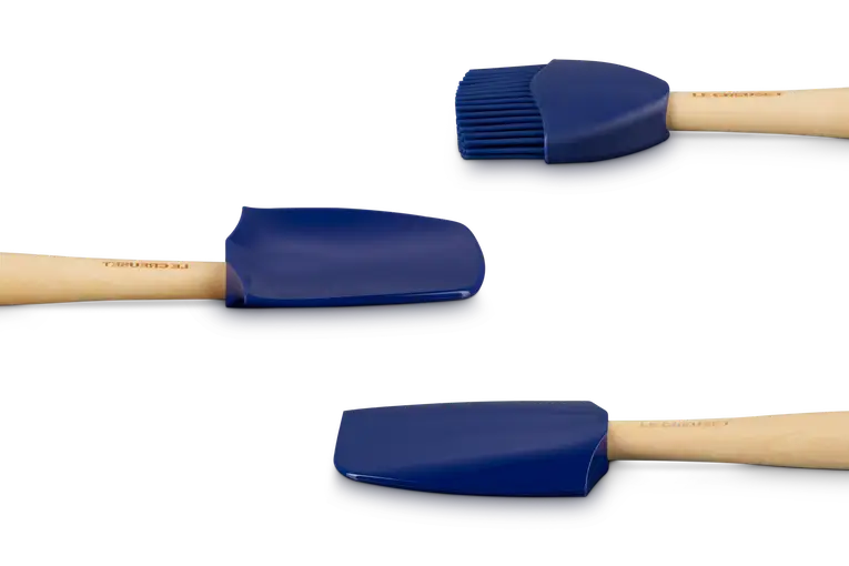 Zestawem akcesoriów kuchennych Craft marki Le Creuset zawiera trzy niezbędne narzędzia: średnią łopatkę kuchenną, dużą łopatkę z łyżką oraz pędzel. Akcesoria te są niezastąpione przy gotowaniu, pieczeniu i smażeniu. Każde z akcesoriów wykonane jest z wysokiej jakości silikonu premium, który jest odporny na wysokie temperatury (do 250°C), a także nie uszkadza delikatnych powierzchni naczyń. Ergonomiczne drewniane uchwyty gwarantują komfort użytkowania i pełną kontrolę nad przygotowywanymi potrawami, a elegancki design doskonale komponuje się z nowoczesnym wystrojem kuchni.