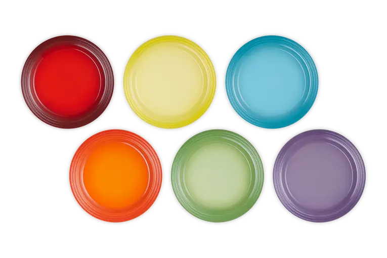 Zestaw 6 dużych talerzy marki Le Creuset z kolekcji Rainbow to energetyczne połączenie intensywnych, apetycznych barw, które ożywią każdy posiłek – od codziennego śniadania po wyjątkową kolację w gronie bliskich. Talerze sprawdzą się zarówno na co dzień, jak i przy bardziej uroczystych okazjach – możesz je dowolnie miksować lub zestawiać z innymi elementami kolekcji Le Creuset.