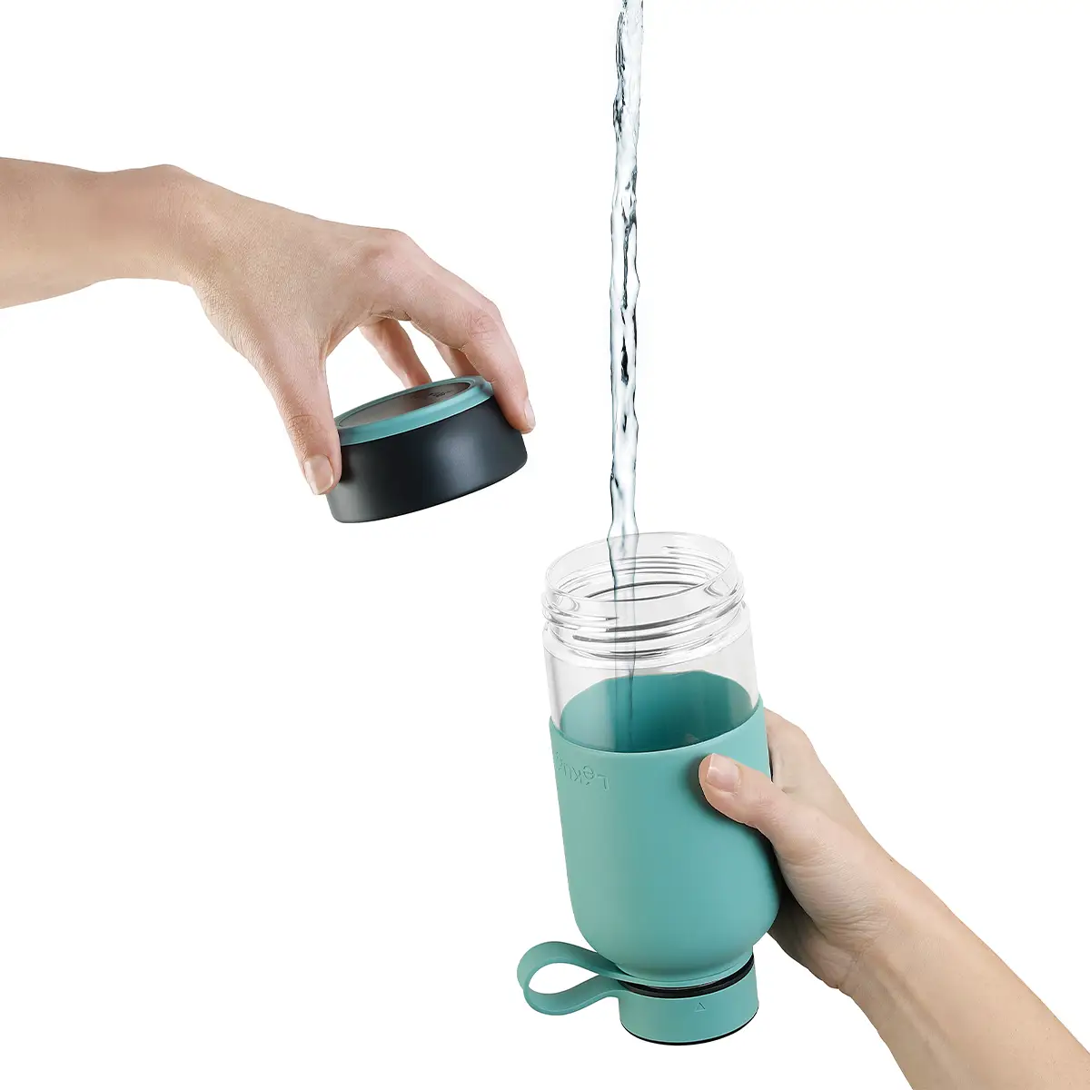 Lekue - Butelka szklana na wodę TO GO turkusowa