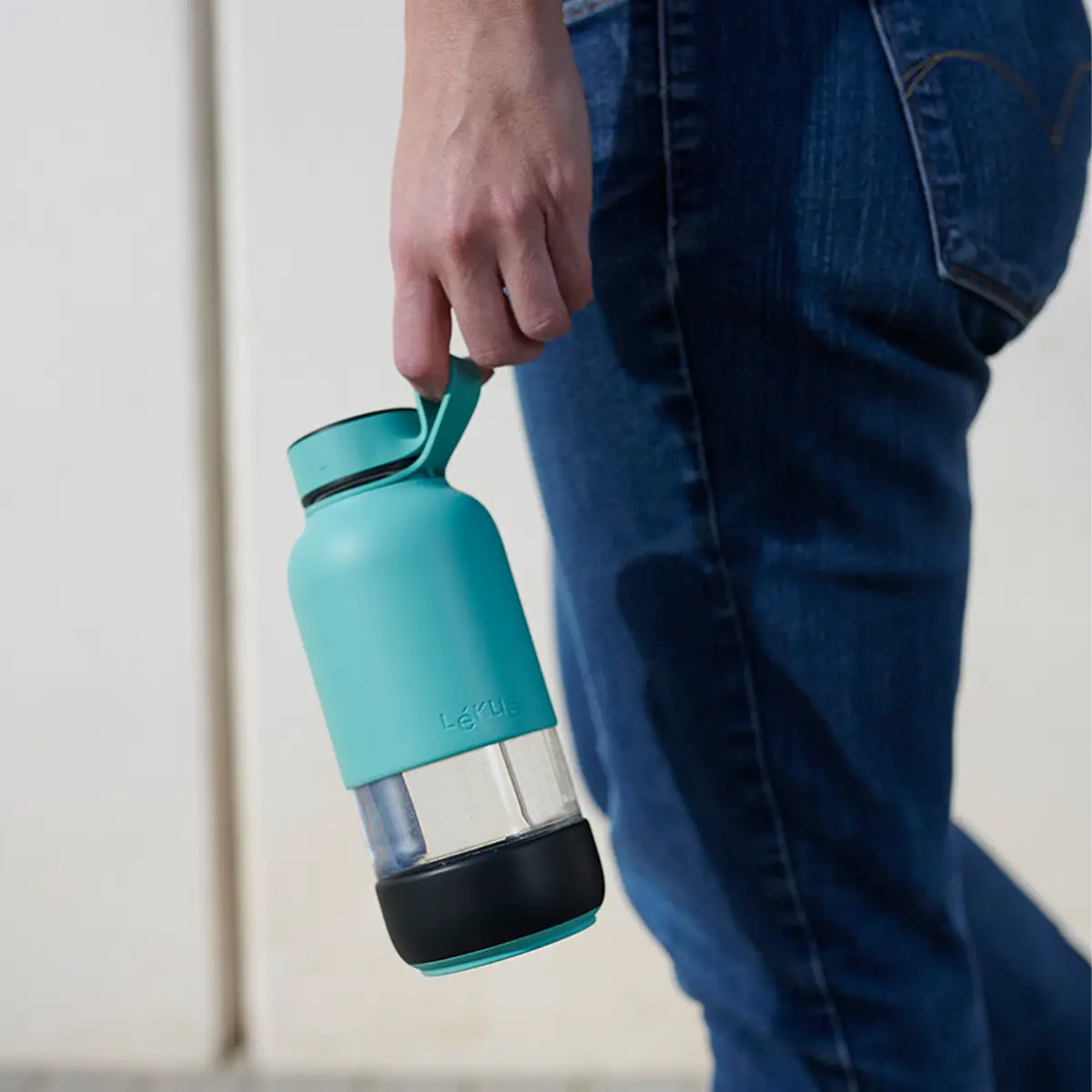 Lekue - Butelka szklana na wodę TO GO 500ml Turkusowa