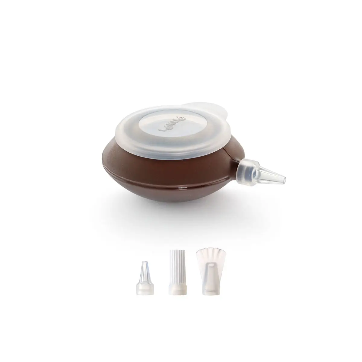 Ergonomiczny i wygodny w użyciu DECO PEN marki Lekue służy do dekorowania deserów lub dań. Wyposażony jest w cztery różne końcówki, w tym dwie nowe: