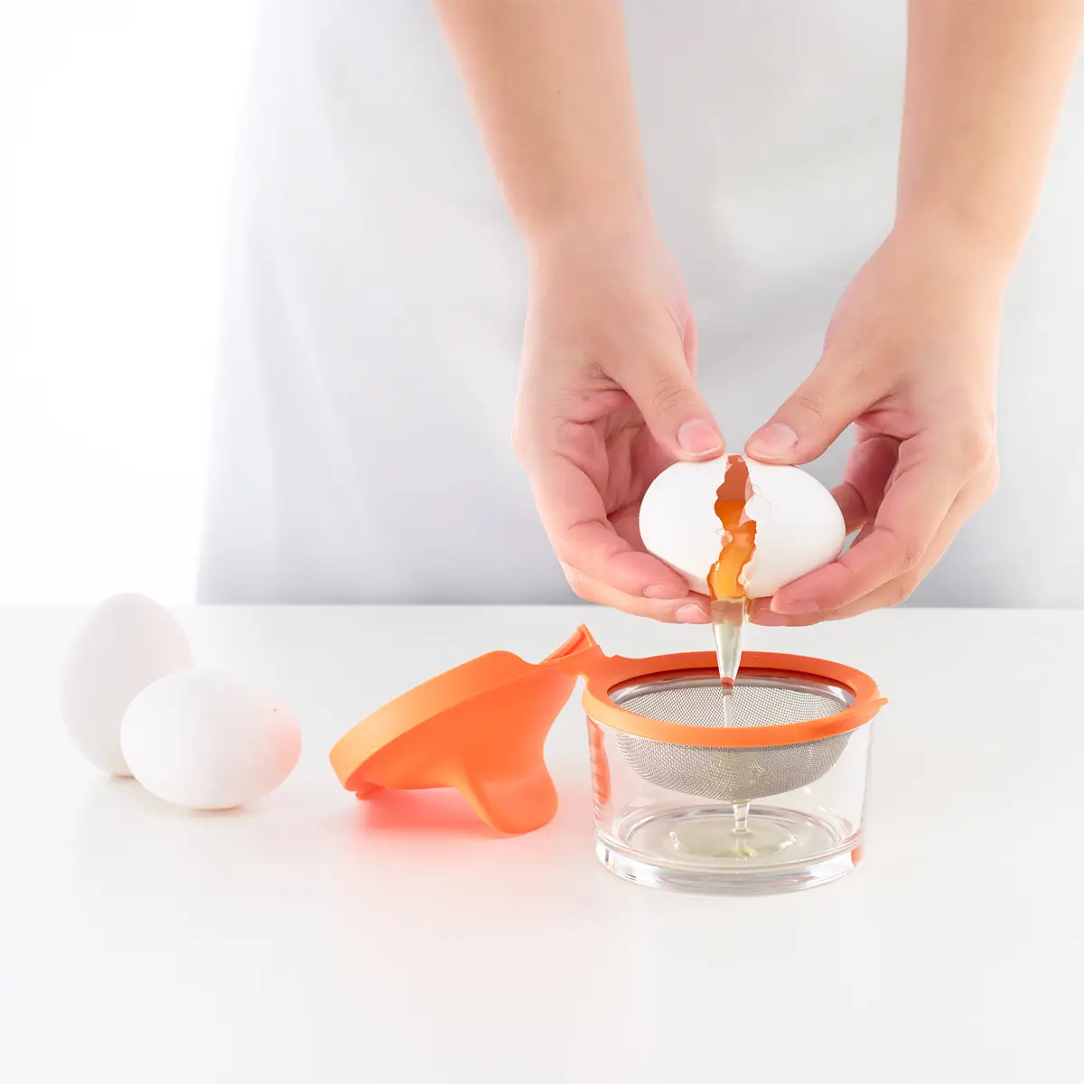 - wybić jajko na siteczko i chwilę odczekać, aby woda zawarta w białku jajka miała czas odpłynąć;