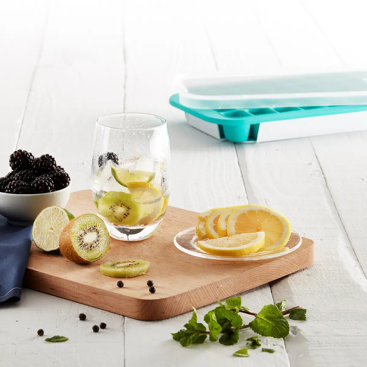 Lekue - Forma do kostek lodu z tacką - turkusowa