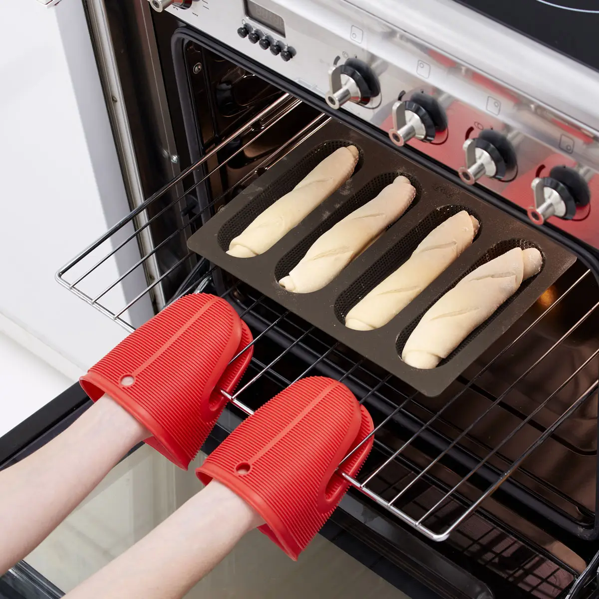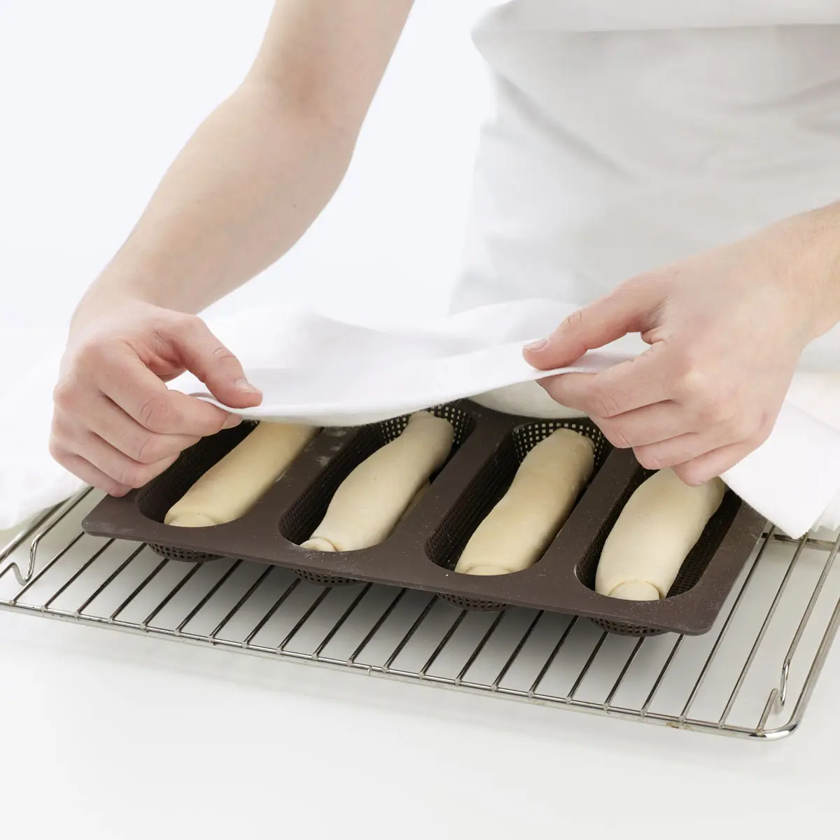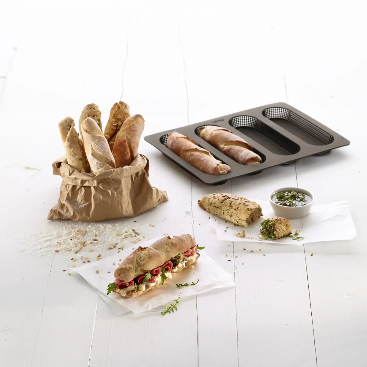 Wysokiej jakości forma marki Lekue wykonana jest w 100% z silikonu platinium. Służy ona do pieczenia minibagietek, posiada cztery wgłębienia, które pozwolą na uformowanie idealnych wypieków. Forma posiada mikro-perforowane dno, dzięki któremu Twoje wypieki zawsze będą idealnie chrupiące. Produkt wolny od BPA.