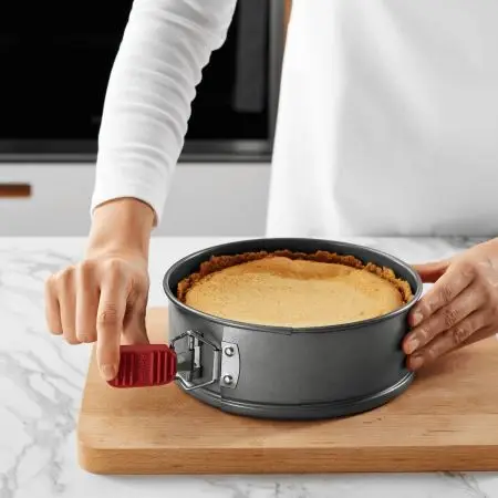 - Ta foremka do ciasta, znana z wygody i praktyczności, jest wyposażona w uchwyt z platynowego silikonu, który ułatwia otwieranie bez ryzyka uszkodzenia wypieków, dzięki czemu możesz je natychmiast ozdobić lub podać.