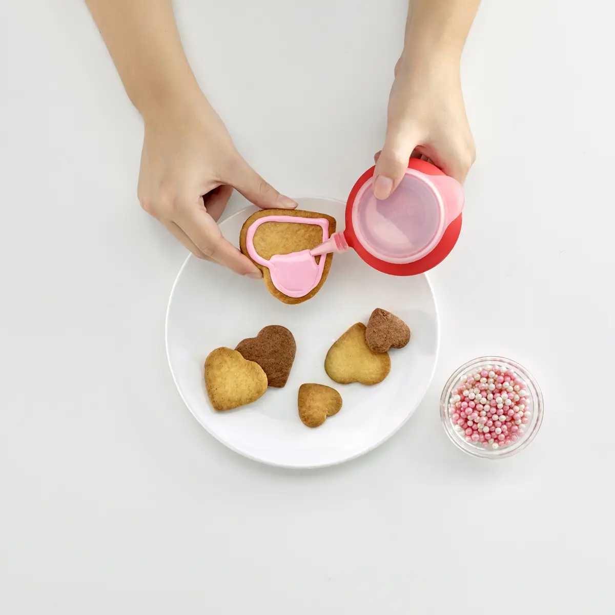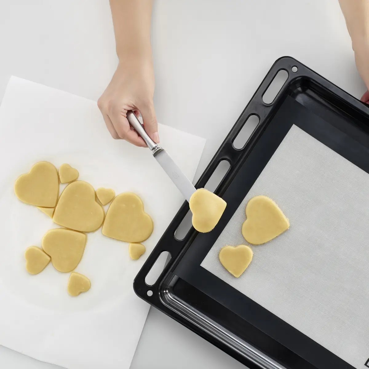 Forma marki Leuke służy do wykrawania ciasteczek w kształcie serduszka. Jest bardzo prosta w użyciu - wystarczy rozwałkować ciasto kruche lub na pierniczki, a następnie mocno docisnąć formę, w ten sposób otrzymamy 12 ciastek w kształcie serduszek w różnych rozmiarach. Przed pierwszym użyciem należy formę umyć. Nie należy używać jej w piekarniku i mikrofalówce, a także umieszczać bezpośrednio nad źródłem ciepła lub ognia. Po użyciu opłukać pod gorącą wodą. Można myć w zmywarce na górnej półce. Do mycia nie używać druciaków i ostrych gąbek.