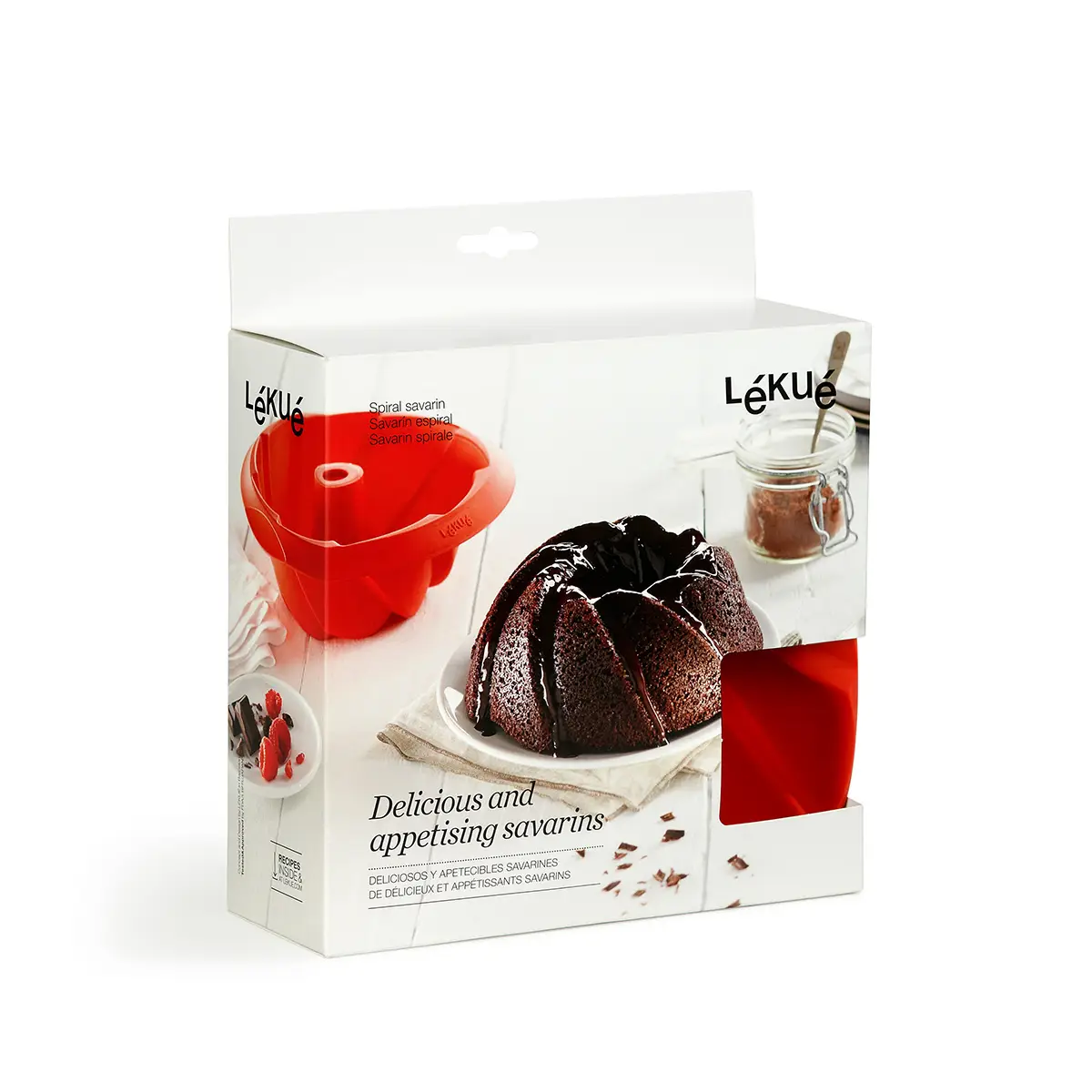 Forma marki Lekue służy do pieczenia wilgotnej, pysznej babki savarin*. Forma ma oryginalny, idealnie odwzorowany kształt. Wykonana została z bezpiecznego dla zdrowia silikonu platinium. Przepis na babkę znajduje się w dołączonej do formy książeczce z przepisami w 12 wersjach językowych (bez polskiego). Formy można używać w mikrofalówce, piekarniku, zamrażarce oraz można myć w zmywarce.