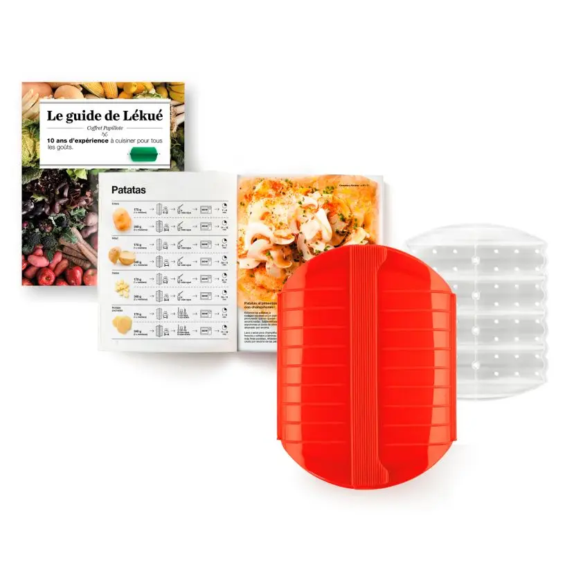 Lekue - Głębokie naczynie do mikrofalówki z tacką dla 3-4 os + książka - czerwone