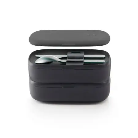 Lekue - Lunchbox TO GO czarny LIMITED + sztućce