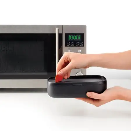 - Bezpieczny do użytku w kuchence mikrofalowej. Posiada również wbudowany zawór, aby zapewnić bezpieczne użytkowanie w kuchence mikrofalowej, a jednocześnie zachować szczelność.