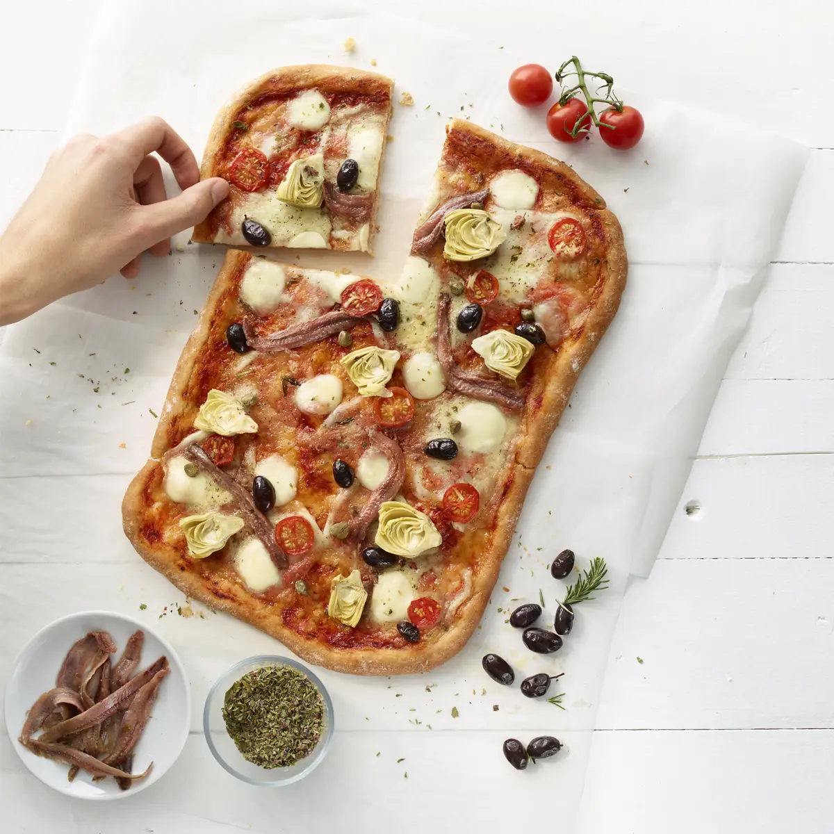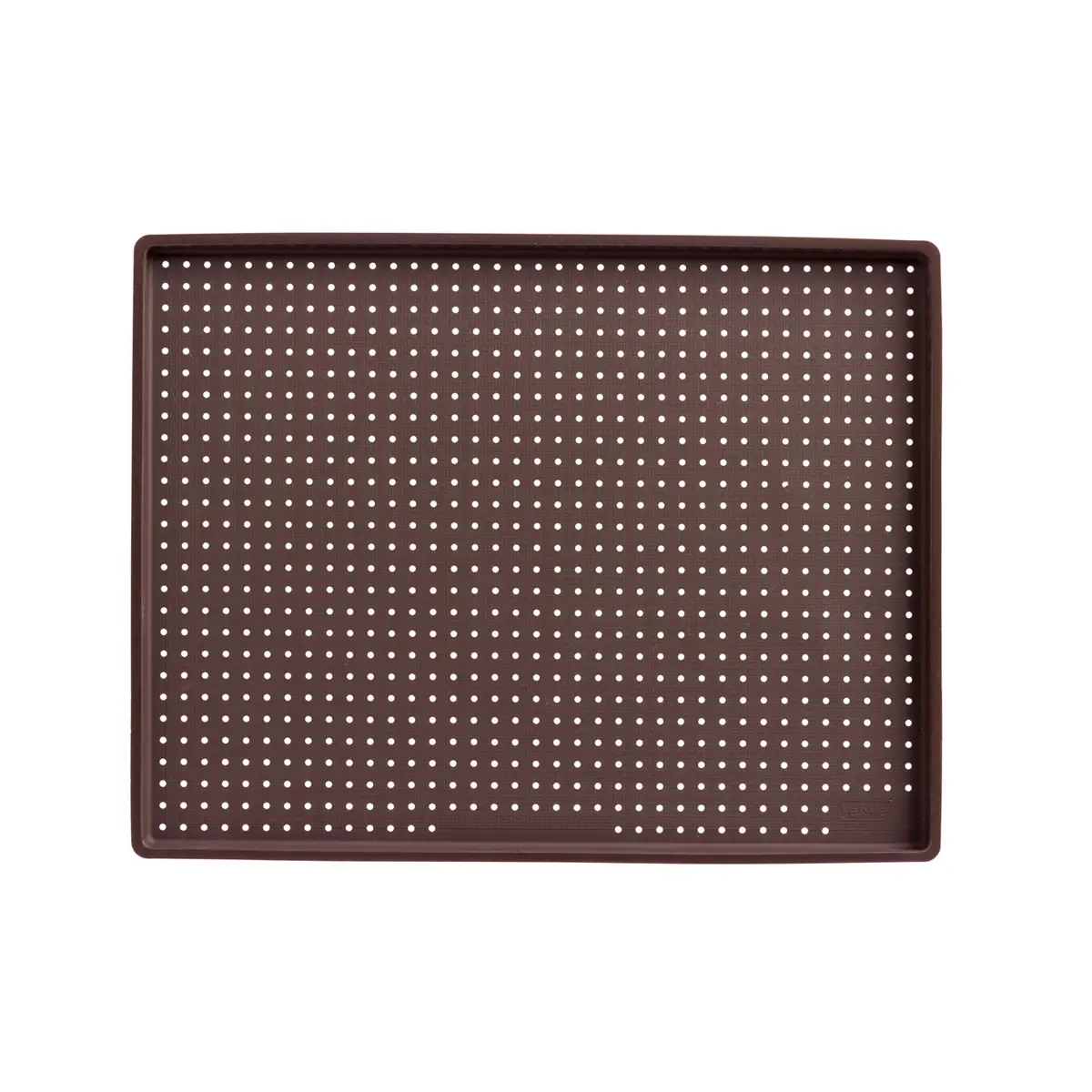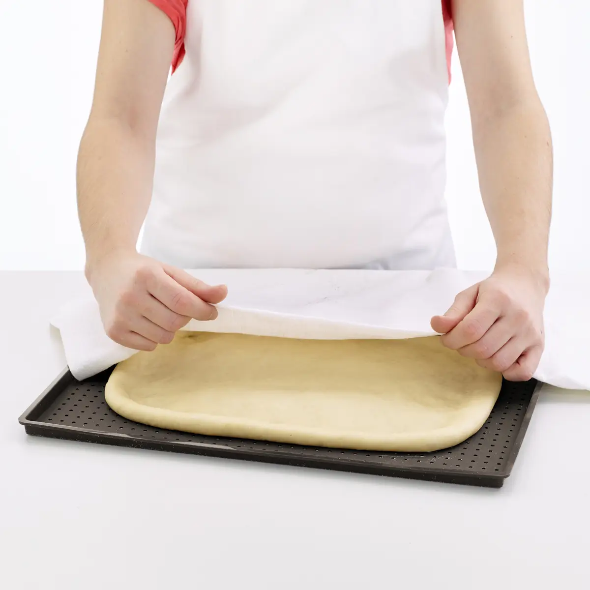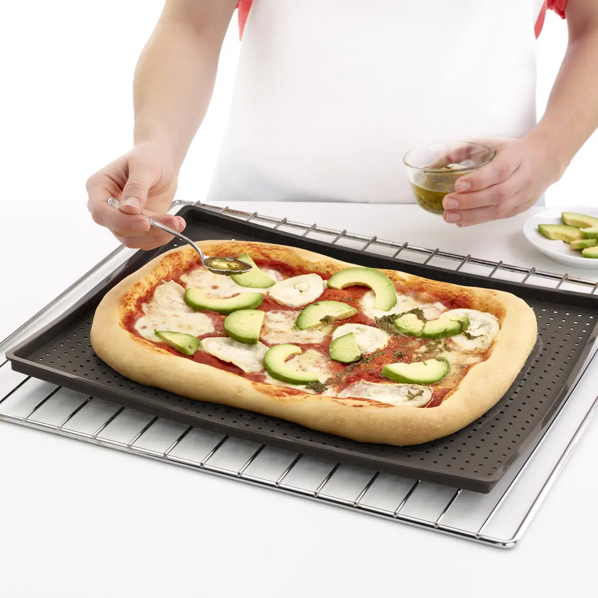 Silikonowa mata marki Lekue przeznaczona jest do pieczenia pizzy. Posiada ona mikro-perforowane dno, które zapewnia idealną cyrkulację powietrza, dzięki czemu ciasto zawsze wychodzi chrupiące. Forma posiada niewysoki rant, który pomaga dobrać grubość ciasta oraz zapobiega rozsypywaniu mąki po blacie. Nieprzywieralna powłoka nie wymaga użycia tłuszczu do pieczenia, ciasto łatwo odkleja się od jej powierzchni. Elastyczność materiału, z którego wykonany jest produkt ułatwia zarówno przyrządzanie ciasta, jak i przechowywanie nieużywanej maty (można ją zwinąć).