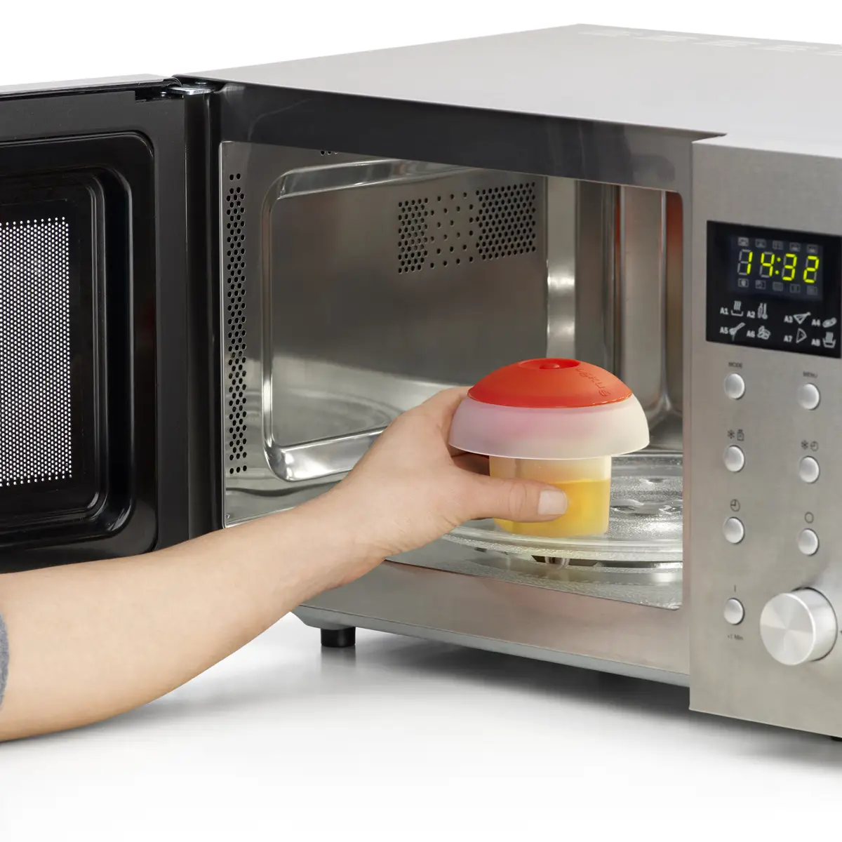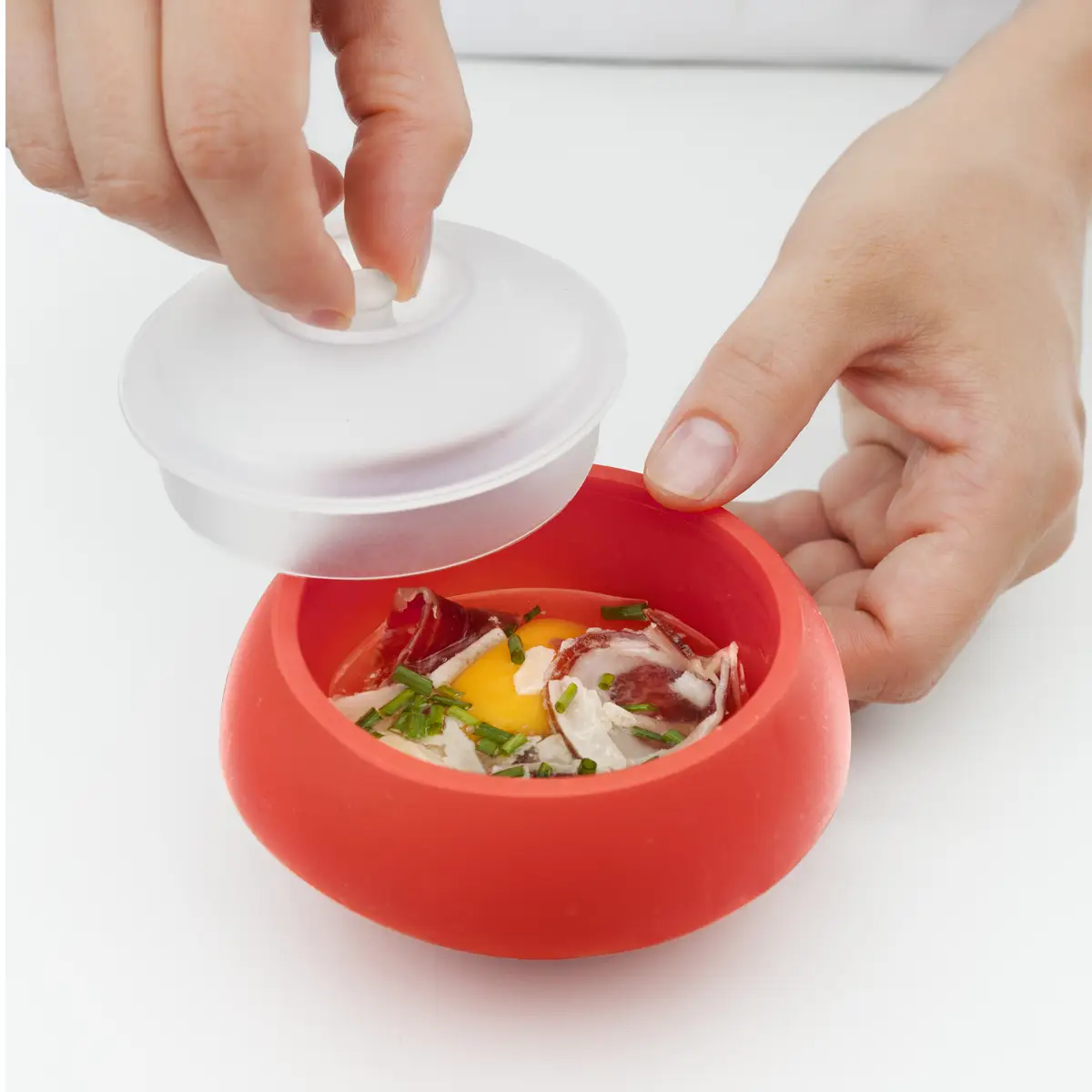 Zestaw dwóch naczyń do gotowana jajek marki Lekue pozwoli Ci na przygotowanie rozmaitego śniadania. Wykonane jest z wysokiej jakości silikonu, który posiada nieprzywierającą powłokę, dzięki której bez trudu wyciągniesz z niego potrawę. W skład zestawu wchodzą dwa naczynia w kształcie - cylindryczny i sześcienny. Umożliwiają one łączenie smaków i kształtów geometrycznych. W naczyniach przygotujesz jajka na miękko lub na twardo z dodatkami - np. z cebulą, serem, szynką, łososiem, brokułami, bekonem. Można myć w zmywarce. Produkt wolny od BPA.