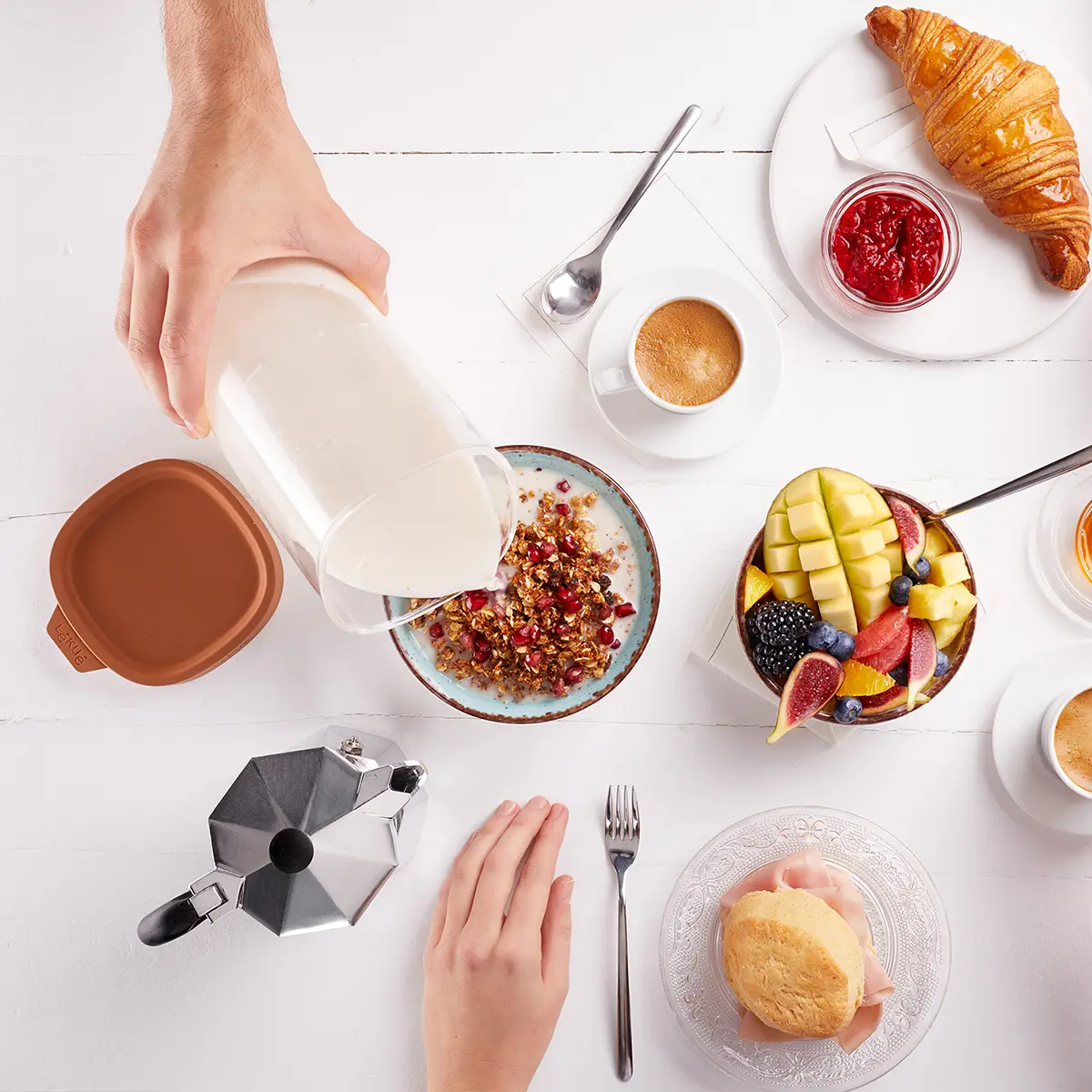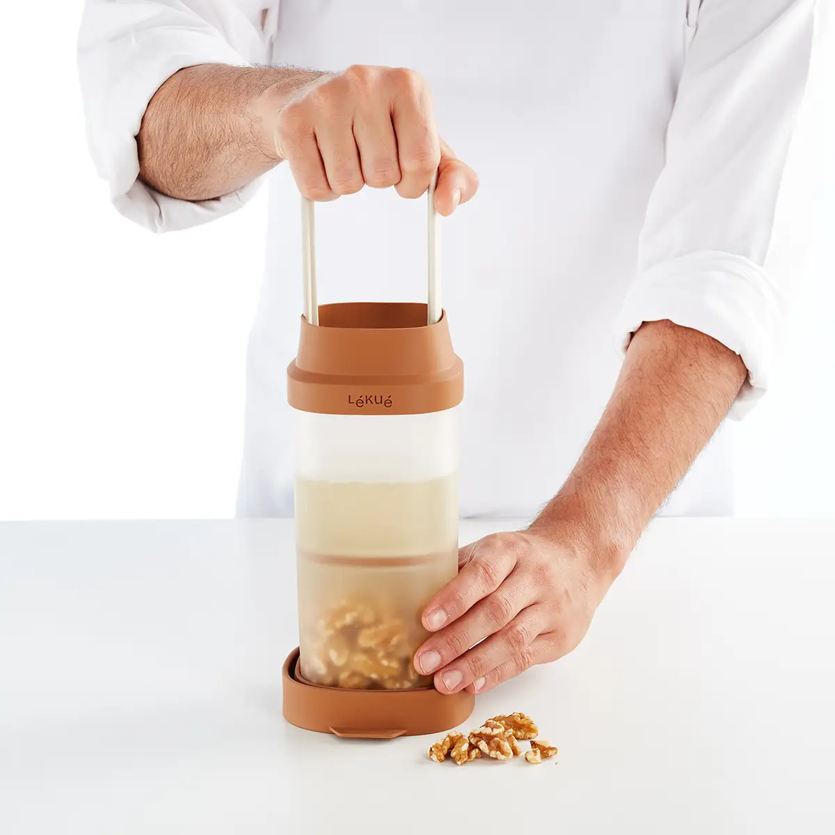 Naczynie marki Lekue przeznaczone jest do przygotowywania mleka roślinnego w domu. Ma pojemność jednego litra. Jest to idealne rozwiązanie dla wegan, osób uczulonych na laktozę lub tych, którzy chcą wzbogacić swoją dietę. Naczynie składa się z czterech części: