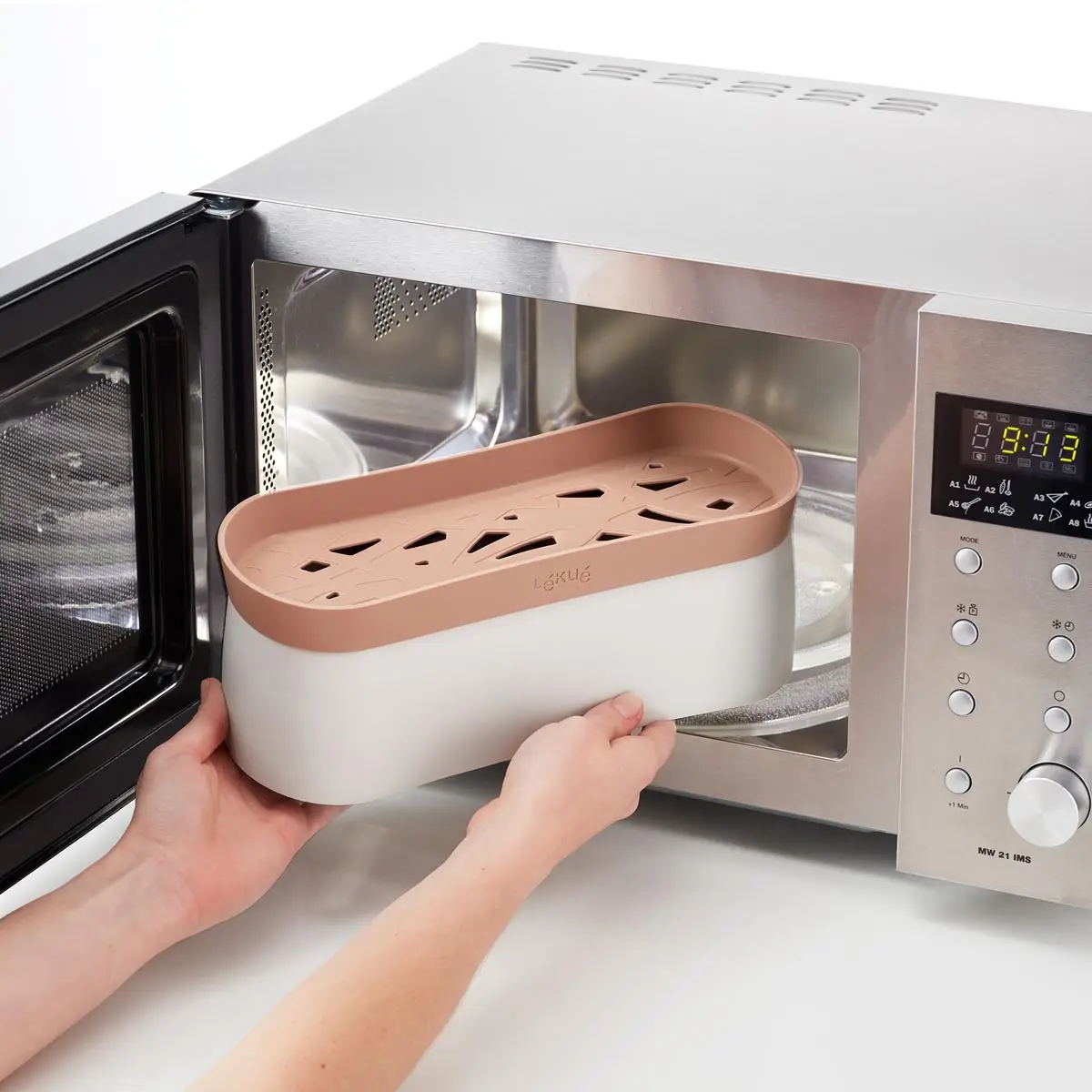 Produkt przystosowany do kuchenek mikrofalowych o pojemności min. 25L i średnicy talerza min. 28 cm.