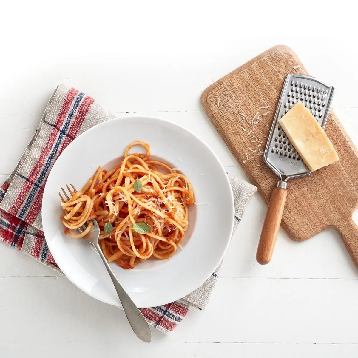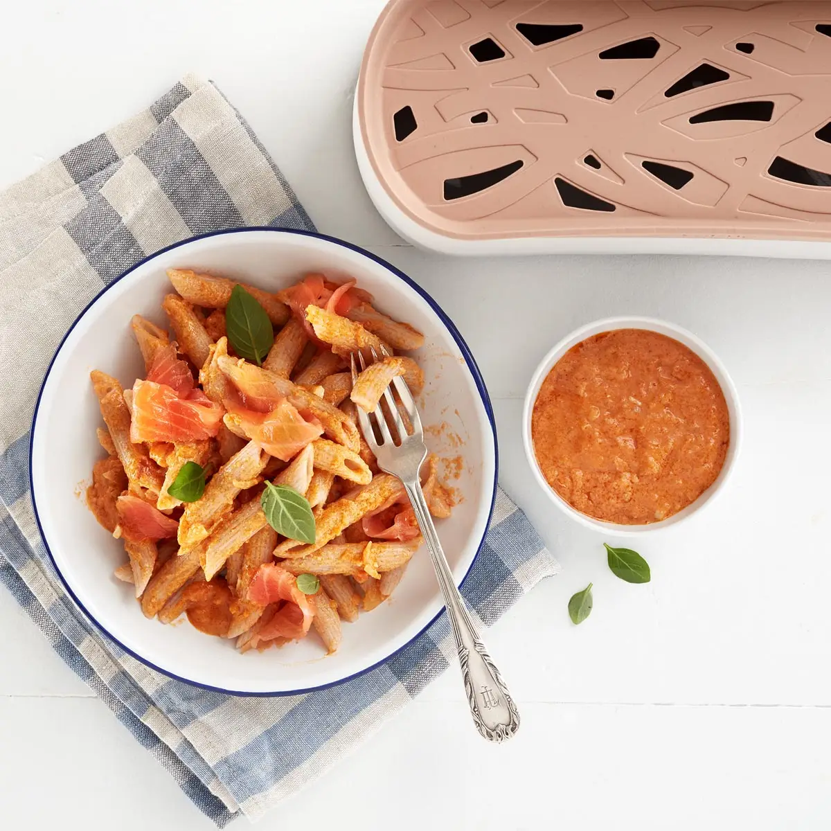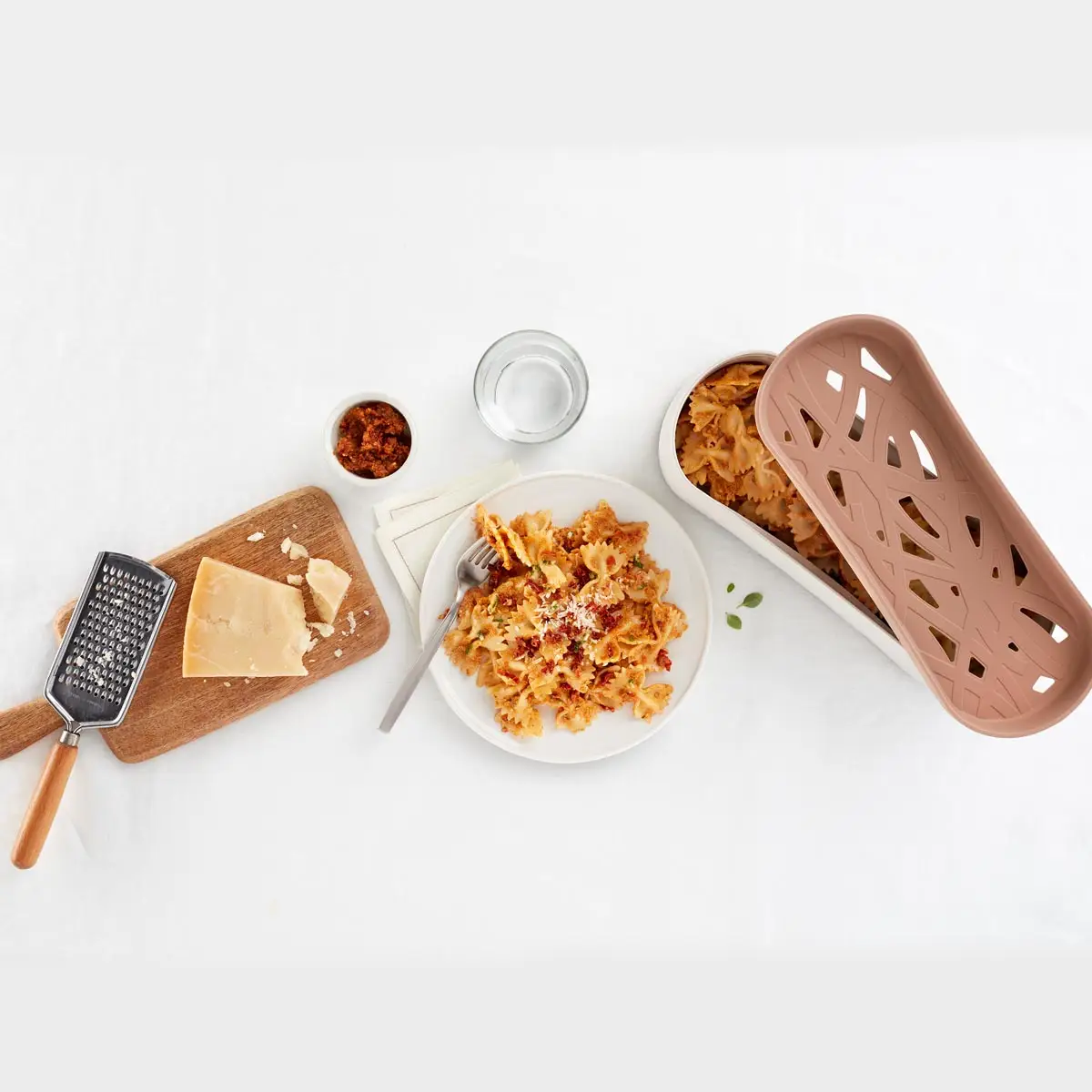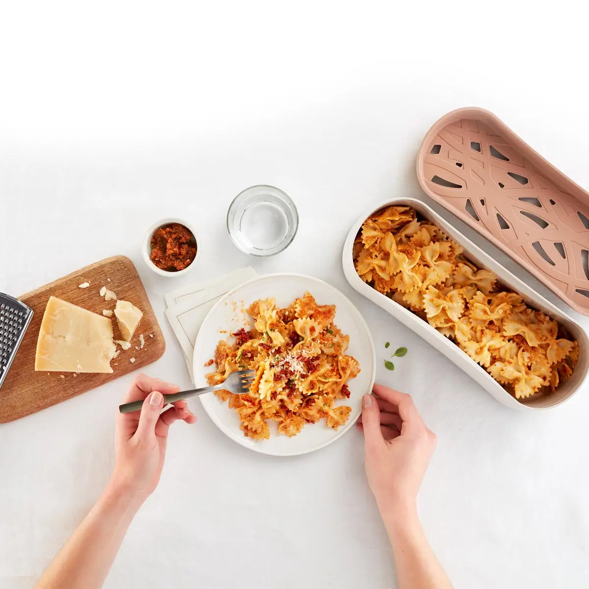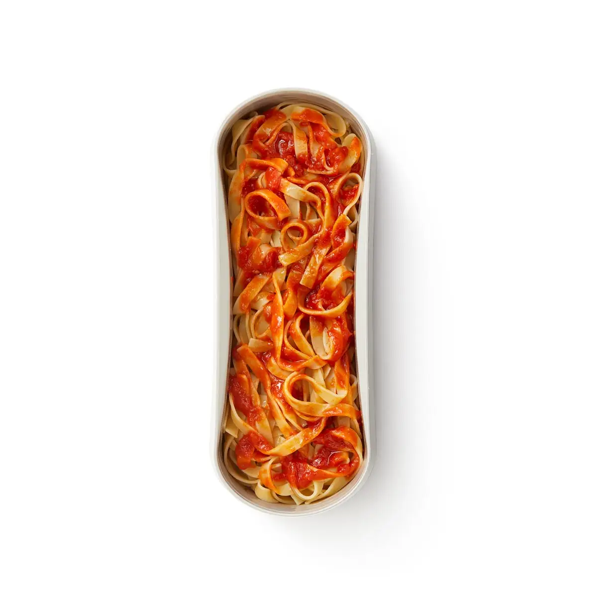 Naczynie marki Lekue o pojemności 1,5 litra służy do gotowania makaronu. Można w nim przygotować każdy rodzaj makaronu od spagetti po nadziewane raviolli. Naczynie zostało stworzone z myślą o ludziach zabieganaych. Może służyć zamiast miarka do makaronu, garnek, durszlak, patelni do przygotowania sosu, a także jako miska do serwowania gotowego dania.