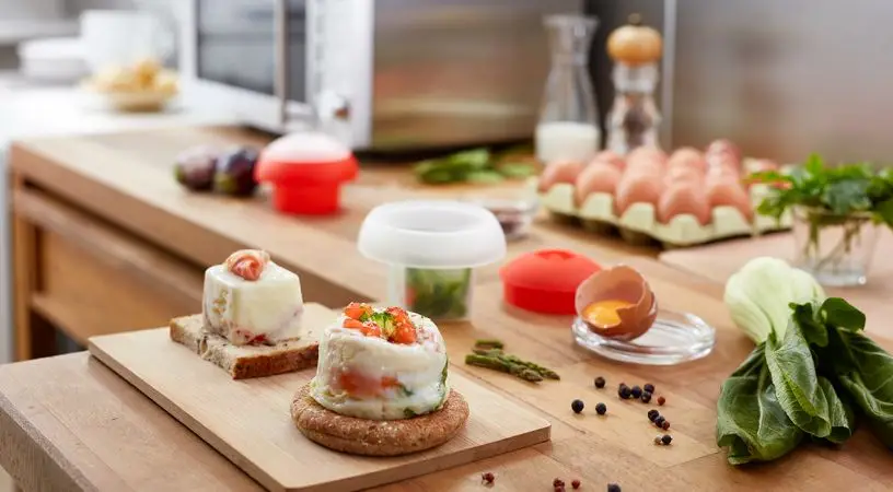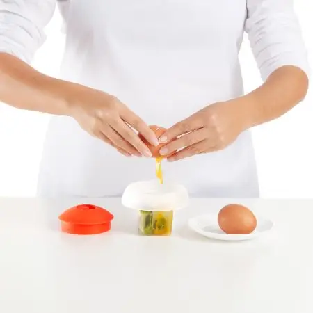 - Wystarczy wbić jajko do mikrofalówki Ovo i dodać dowolne składniki. Proces gotowania w mikrofalówce zajmuje tylko kilka sekund; Umieść foremkę z jajkiem na krawędzi talerza obrotowego mikrofalówki i postępuj zgodnie z czasem wskazanym dla preferowanego rodzaju jajka.