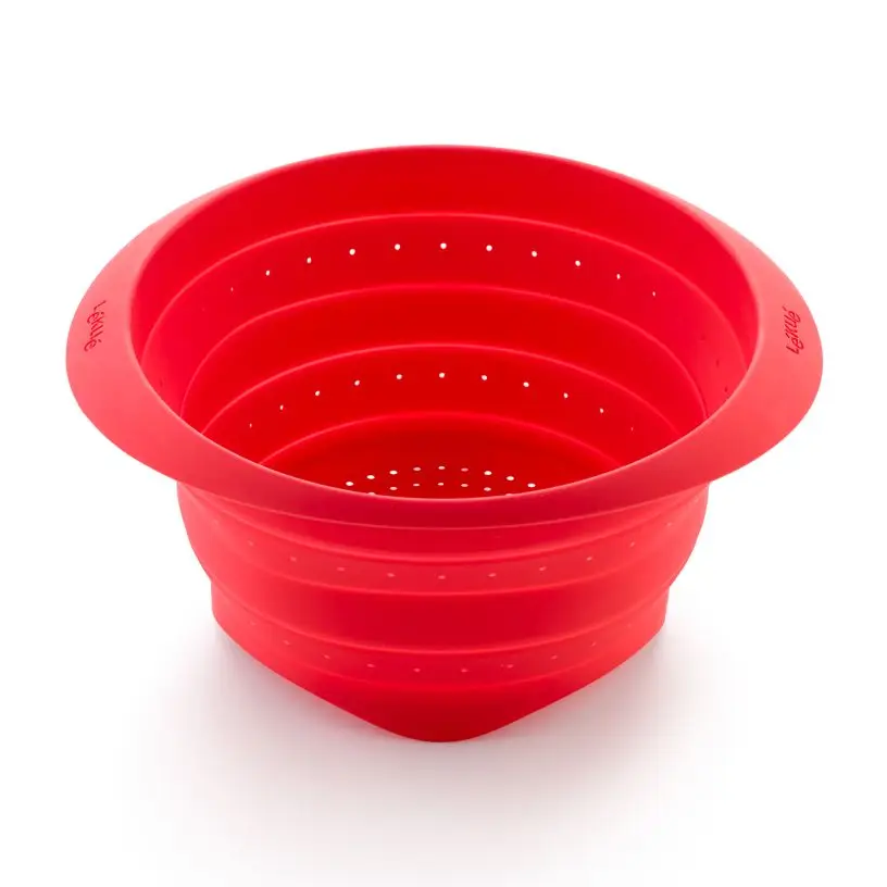Kompaktowy i funkcjonalny składany durszlak Lekue to idealne rozwiązanie do codziennego odcedzania i oszczędności miejsca w kuchni. Odcedzanie, płukanie i mycie owoców, makaronów i warzyw jest łatwe i wygodne dzięki składanemu sitku Lékué.