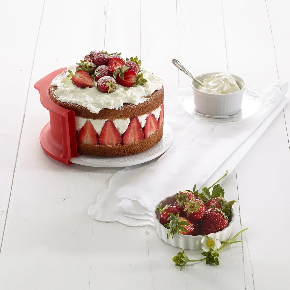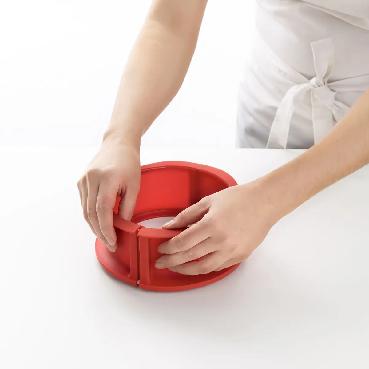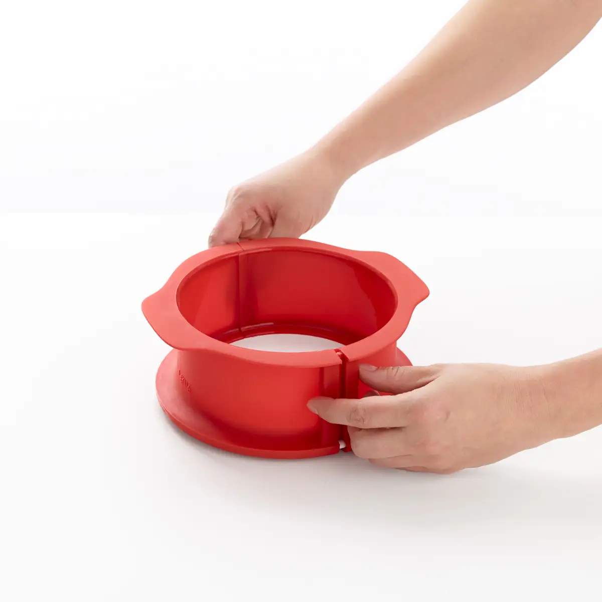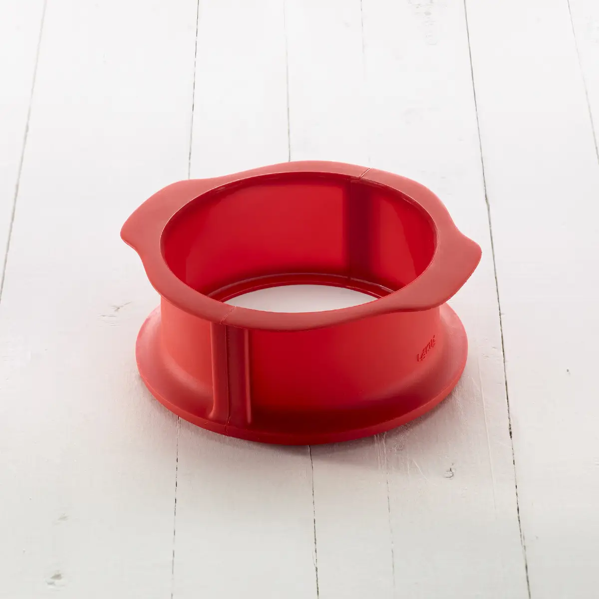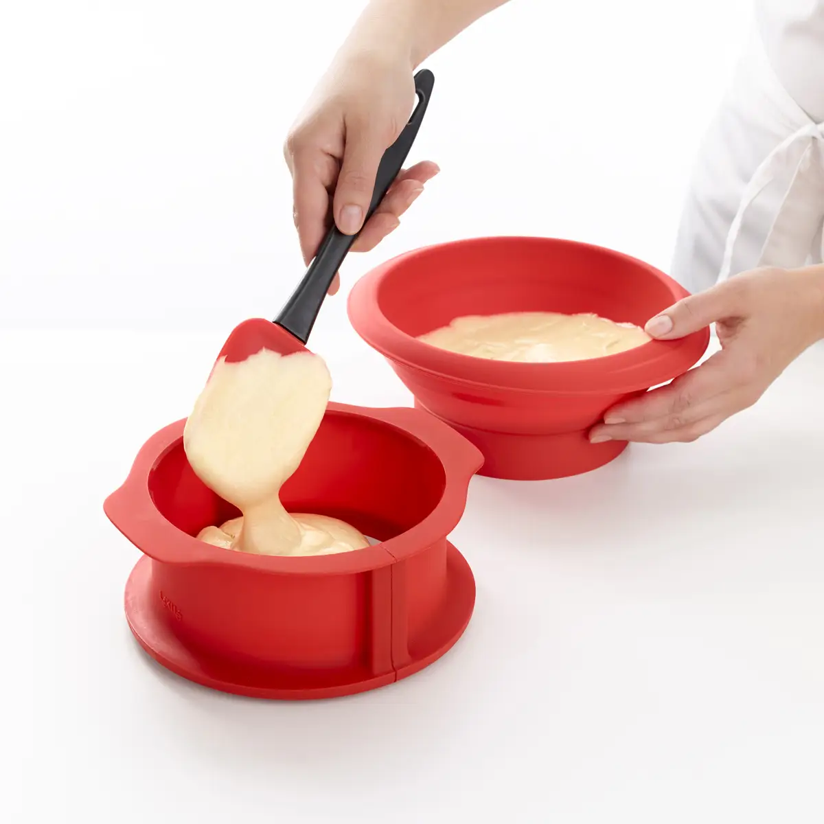 Tortownica DUO marki Lekue ma 15 cm średnicy. Przeznaczona jest do pieczenia tortów, ciast, tart i innych przekąsek. Posiada ceramiczny talerz, który po upieczeniu może służyć również do serwowania wypieków. Forma zapina się bez zatyczki, wykonana jest z wysokiej jakości silikonu platinium, dzięki temu ciasto łatwo się wyciąga. Naczynie odporne jest na wysokie i niskie temperatury, można jej używać w piekarniku, mikrofalówce, a także w lodówce lub zamrażalniku. Po użyciu formę wystarczy umyć pod bieżącą wodą lub w zmywarce.