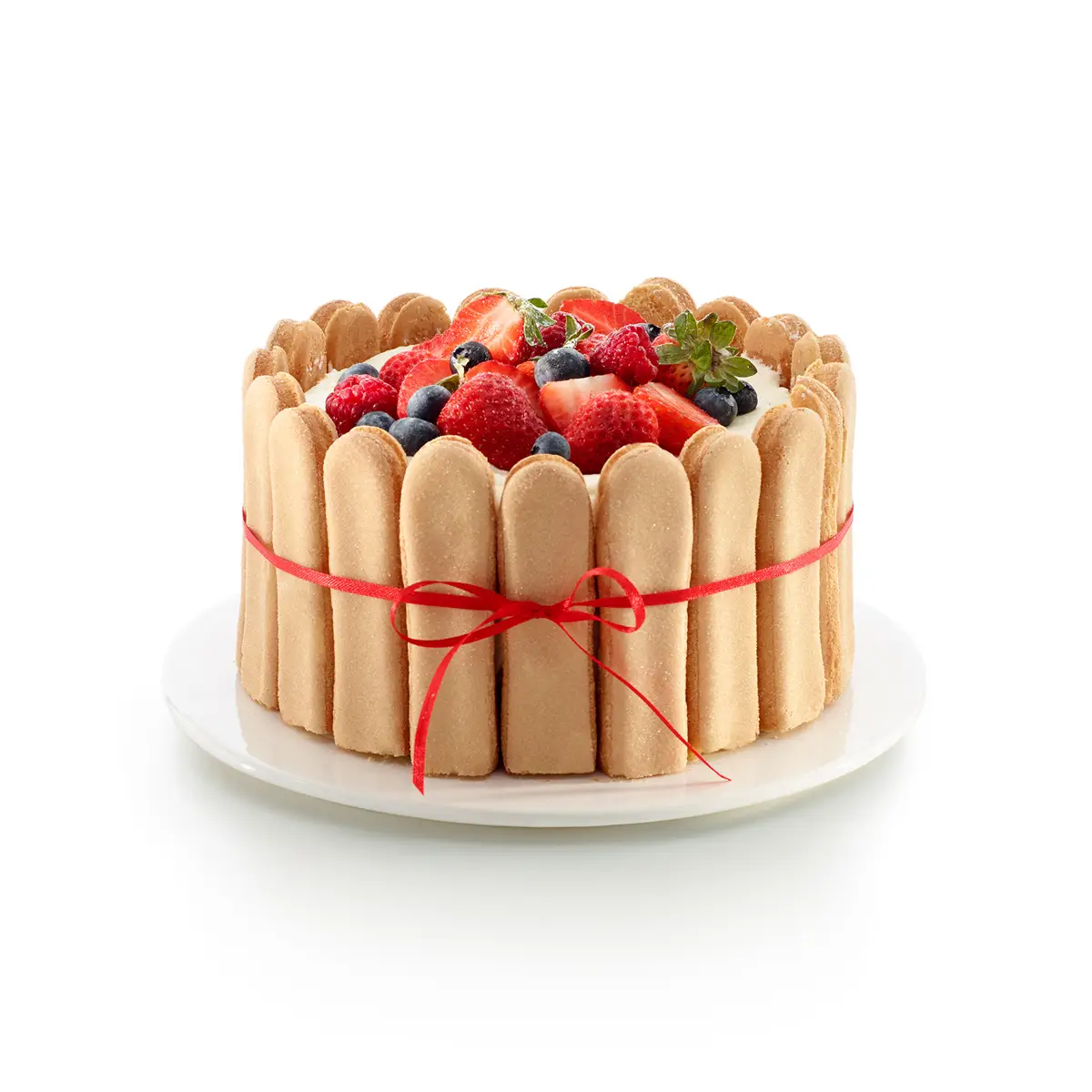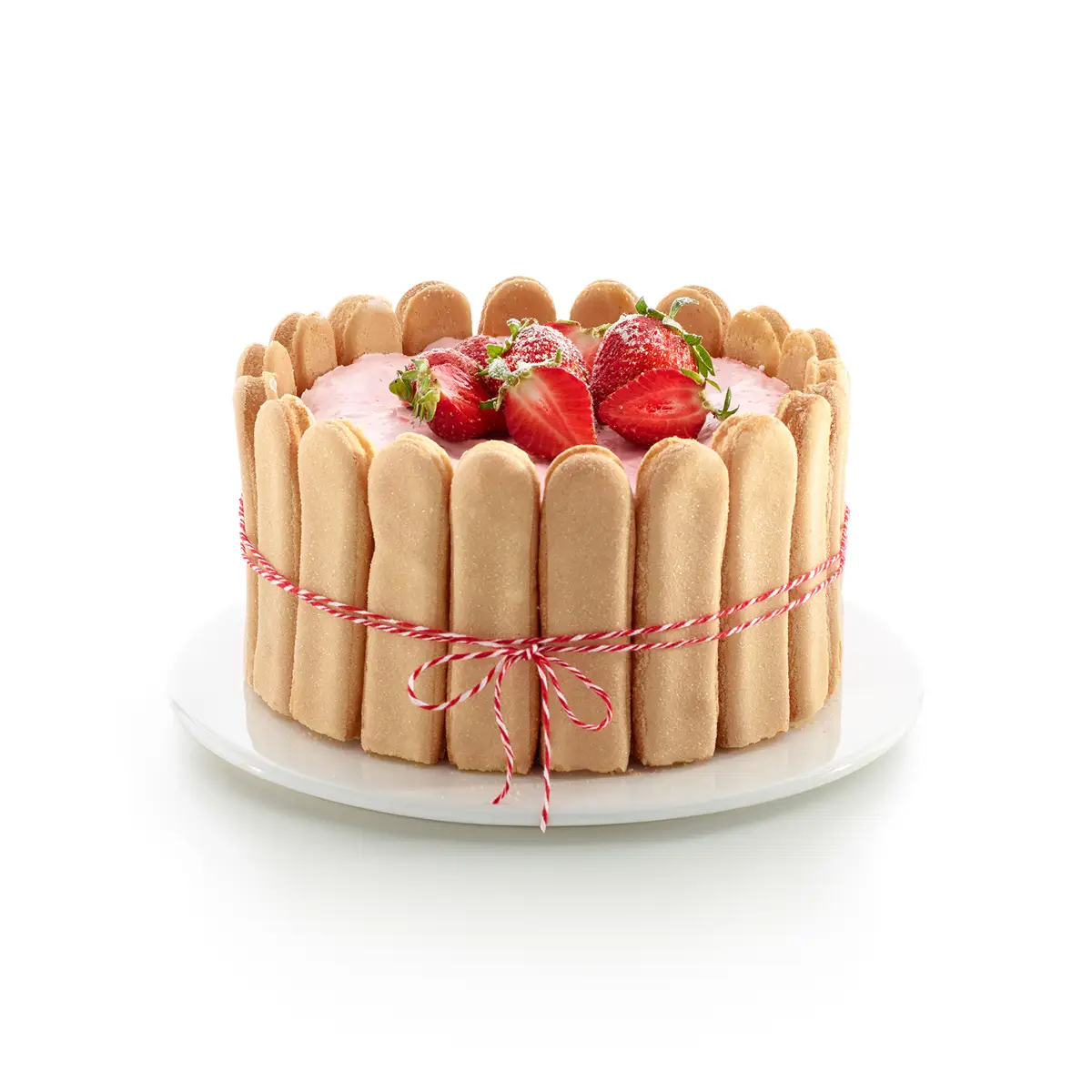 Tortownica DUO marki Leuke składa się z dwuczęściowego kołnierza z silikonu, talerza ceramicznego oraz książeczki z 11 przepisami. Forma przeznaczona jest do deseru CHARLOTTE - jest to ciasto bez pieczenia, które składa się z musu oraz kremu, udekorowanego owocami. Całość zamknięta jest w formie z biszkoptów. Kołnierz łatwo się zapina. Talerz ceramiczny, który stanowi spód tortownicy łatwo wchodzi w jej głębokie zagłębienie. Gotowe danie na ceramicznym talerzu można pokroić i od razu podać na stół. Forma wstawiona do lodówki, zamrażarki, piekarnika lub kuchenki mikrofalowej zawsze spełni swoje zadanie. Wytrzymuje temperatury od +220 st.C do -60 stopni Celsjusza.