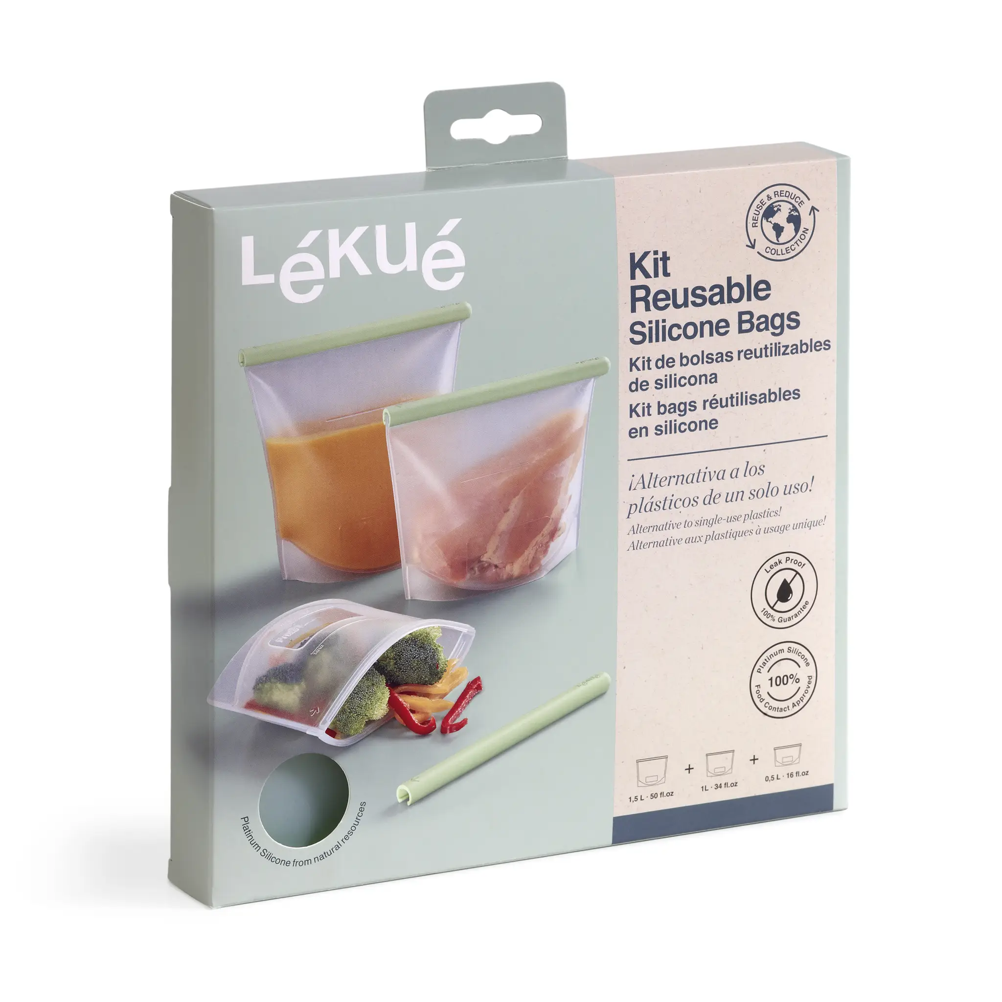 Lekue - Woreczki hermetyczne wielorazowe - zestaw 3 szt.
