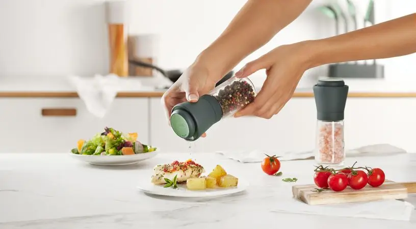 - Nowy design pomaga Ci doprawiać potrawy wydajnie i dokładnie. Nie każdy lubi taką samą ilość soli i pieprzu, więc progresywny regulator wielkości sprawi, że Twoje dania będą idealne dla Twojego podniebienia. Twoje dania doprawione dokładnie tak, jak lubisz!