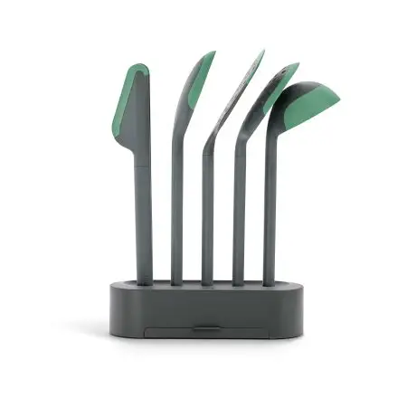 - Otwory w uchwycie pasują do wszystkich przyborów z kolekcji Non-Scratch Kitchen Utensils.