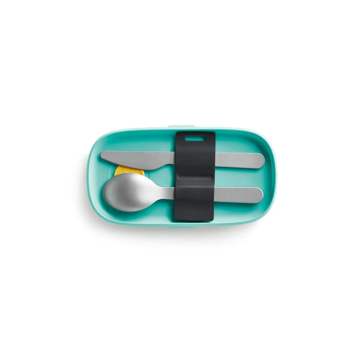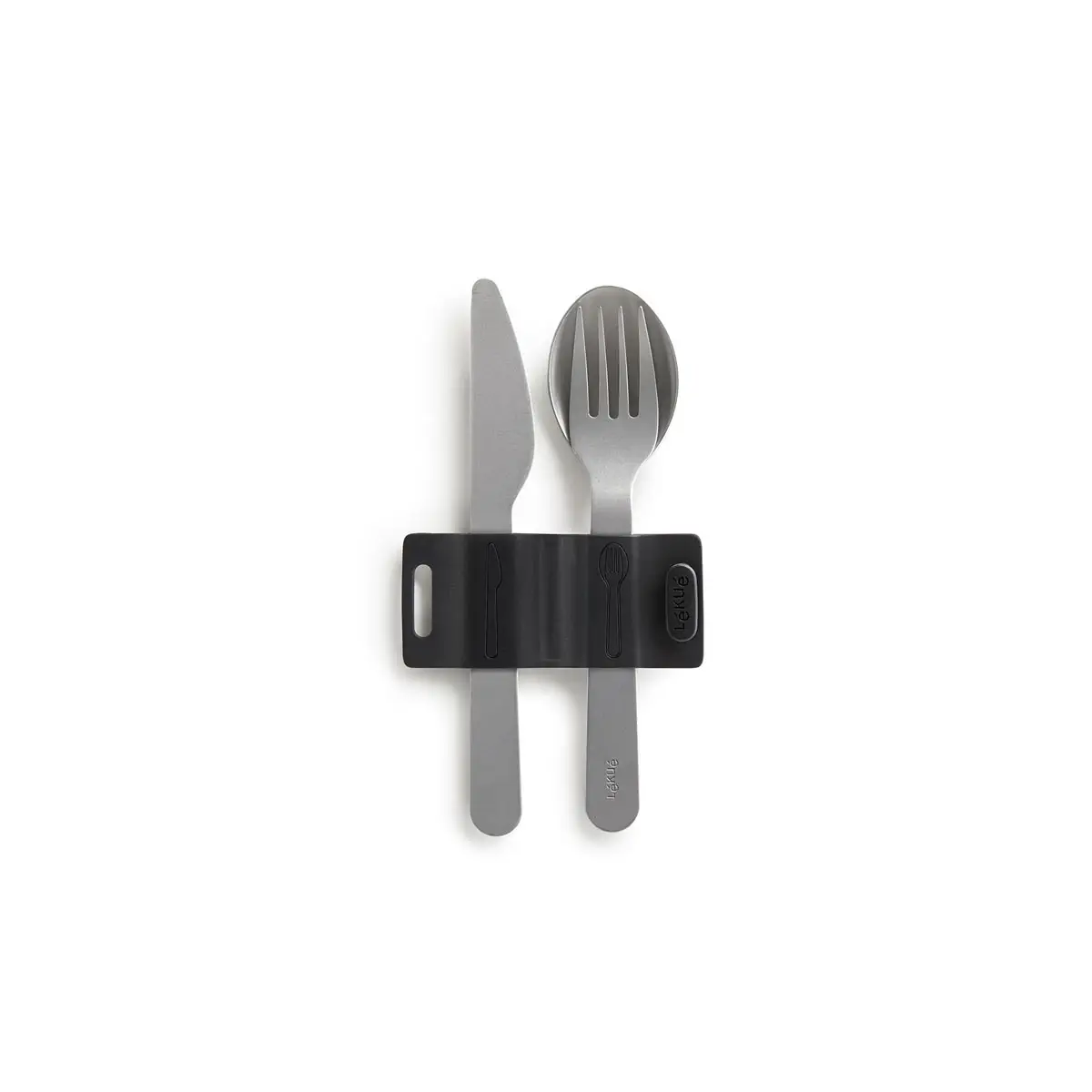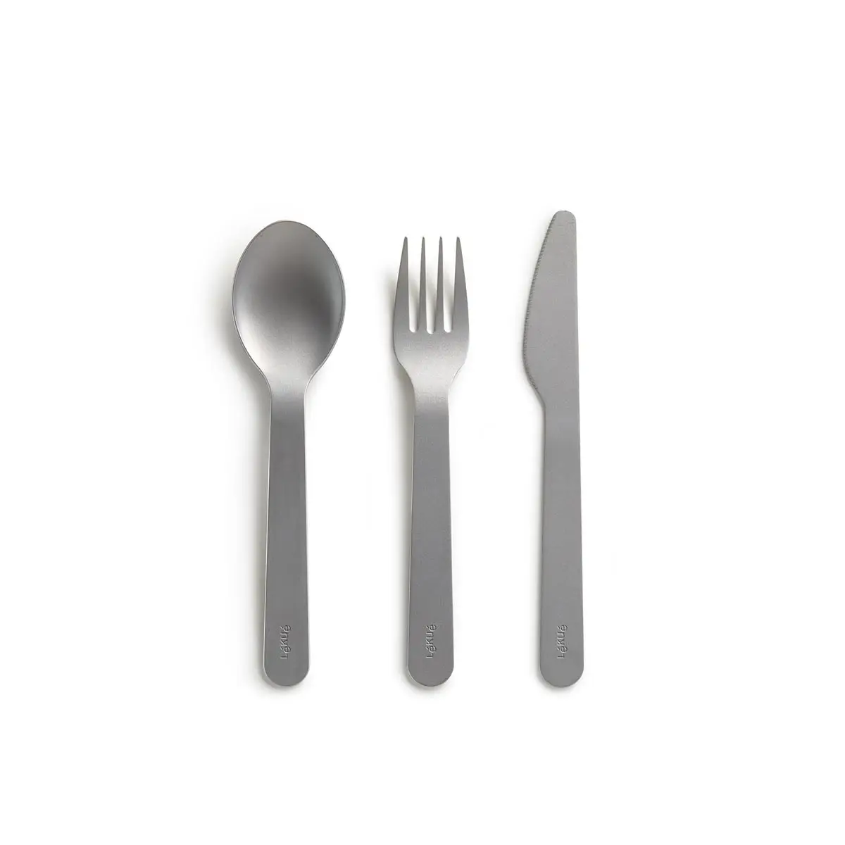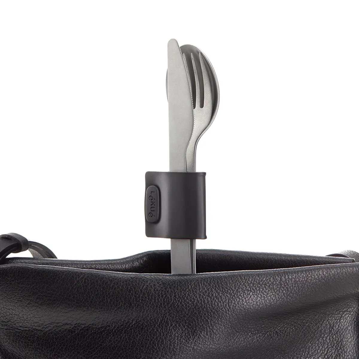 Sztućce marki Lekue pochodzą z kolekcji TO GO. Są wygodne do zabrania ich ze sobą do pracy, szkoły lub na wycieczkę. Pasują do lunchboxów z tej samej serii. Wykonane są ze stali nierdzewnej, Połączone zostały za pomocą silikonowej opaski, dzięki czemu trudno je zgubić. Przed pierwszym użyciem sztućce należy umyć. Można myć w zmywarce. Wolne od BPA.
