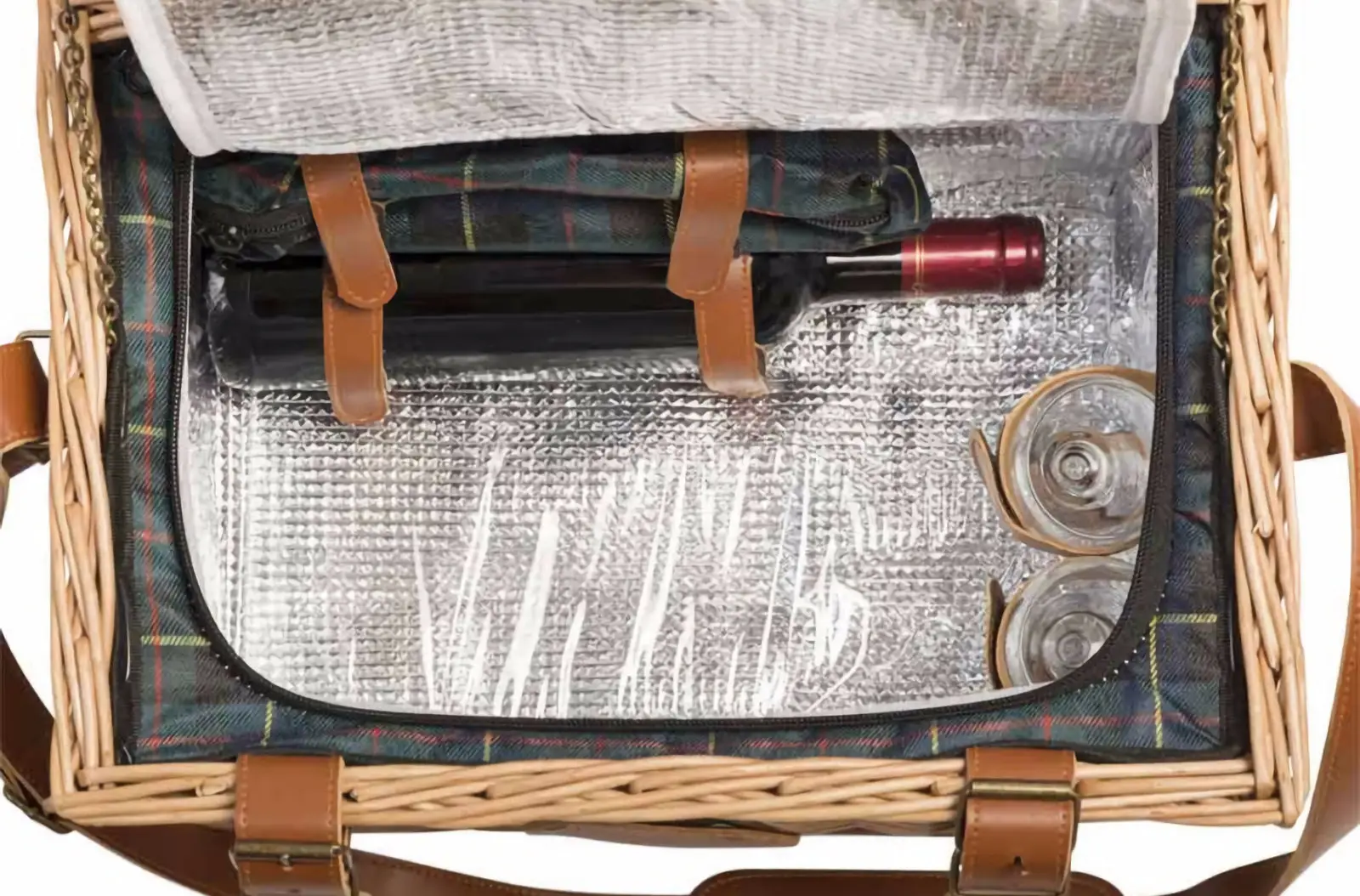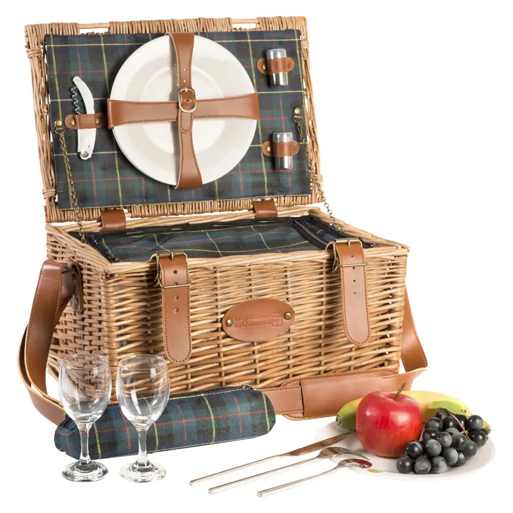 Ręcznie wykonany z wikliny, skóry i tkaniny kosz piknikowy z motywem Trianon Scottish Green to prestiżowy, unikalny produkt, który pozwoli na wyjątkowe spędzenie słonecznego wiosennego lub letniego dnia na zewnątrz. Idealnie nada się na piknik zarówno z rodziną jak i ze znajomymi, elegancko się prezentując m.in. w ogrodzie, parku czy na plaży.