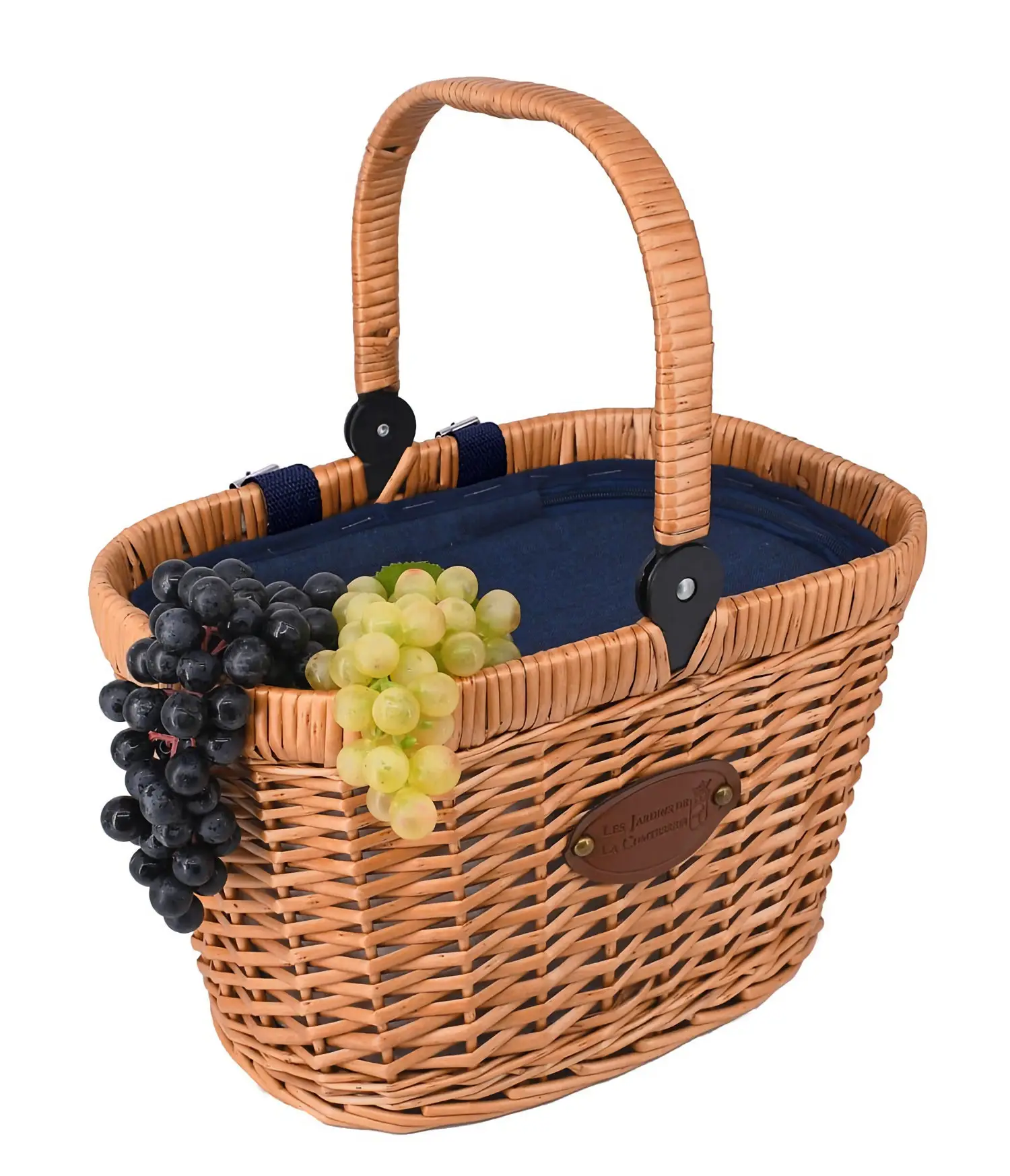 Prezentowany kosz piknikowy Bicycle Chantilly Blue zmieści w sobie napoje i żywność na piknik, a także posłuży jako ekologiczna “torba” na zakupy, pozwalając na komfortowe przetransportowanie zakupionych produktów. Dzięki niewielkiej wadze i wymiarom 37 x 27 x 43 cm (23 cm po złożeniu rączki) nada się nie tylko do transportu w ręce czy samochodzie, ale i na rowerze - w tym celu wyposażony został w dodatkowe, regulowane paski, które pozwalają na łatwe i stabilne przymocowanie go do kierownicy. W jego wygodnym transporcie pomaga także składany uchwyt, który ułatwia również przechowywanie - produkt zajmuje mniej miejsca. Wnętrze kosza zmienione zostało w zapinaną zamkiem błyskawicznym komorę izotermiczną, która utrzymuje umieszczoną w nim żywność w cieple lub chłodzie w zależności od jej temperatury. Dodatkowo znajduje się w nim niewielka kieszeń na drobne akcesoria w postaci kluczy, portfela czy telefonu. Jednak praktyczność nie jest jedyną zaletą kosza. Dzięki zastosowanym materiałom - wiklinie w naturalnym kolorze i tkaninie z efektem denimu o granatowej barwie - produkt prezentuje się wyjątkowo estetycznie i nowocześnie.