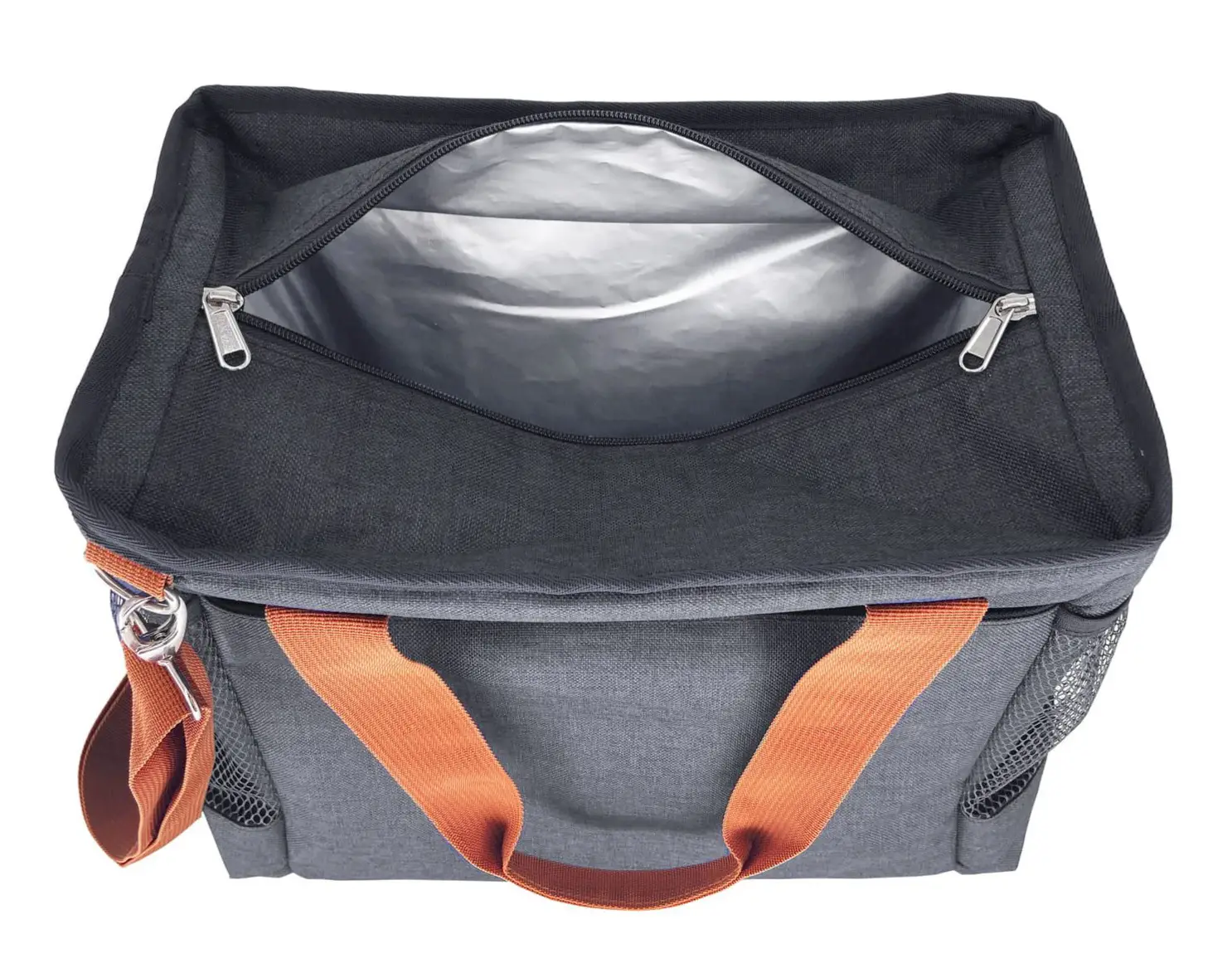 Prezentowana torba Escapade w kolorze szarym podobnie jak plecaki z tej samej kolekcji wykonana została z wytrzymałego, nadającego się do prania w pralce poliestru 600DD. Pomimo dość niedużych wymiarów produkt zapewnia pojemność 20 L. Wewnątrz torby znajduje się izolowana komora, która sprawia, że przenoszona w niej żywność i napoje na dłużej zachowają pożądaną temperaturę (posłuży ona jako przenośna lodówka). Mocne paski i niezbyt duża waga umożliwiają łatwe i wygodne przenoszenie produktu, pozwalając na zabranie go m.in. na wyjazd, wycieczkę czy spacer połączony z piknikiem. Można go zarówno zawiesić na ramieniu - regulowany pasek jak i transportować w ręce - umieszczone po obu stronach mniejsze uchwyty.
