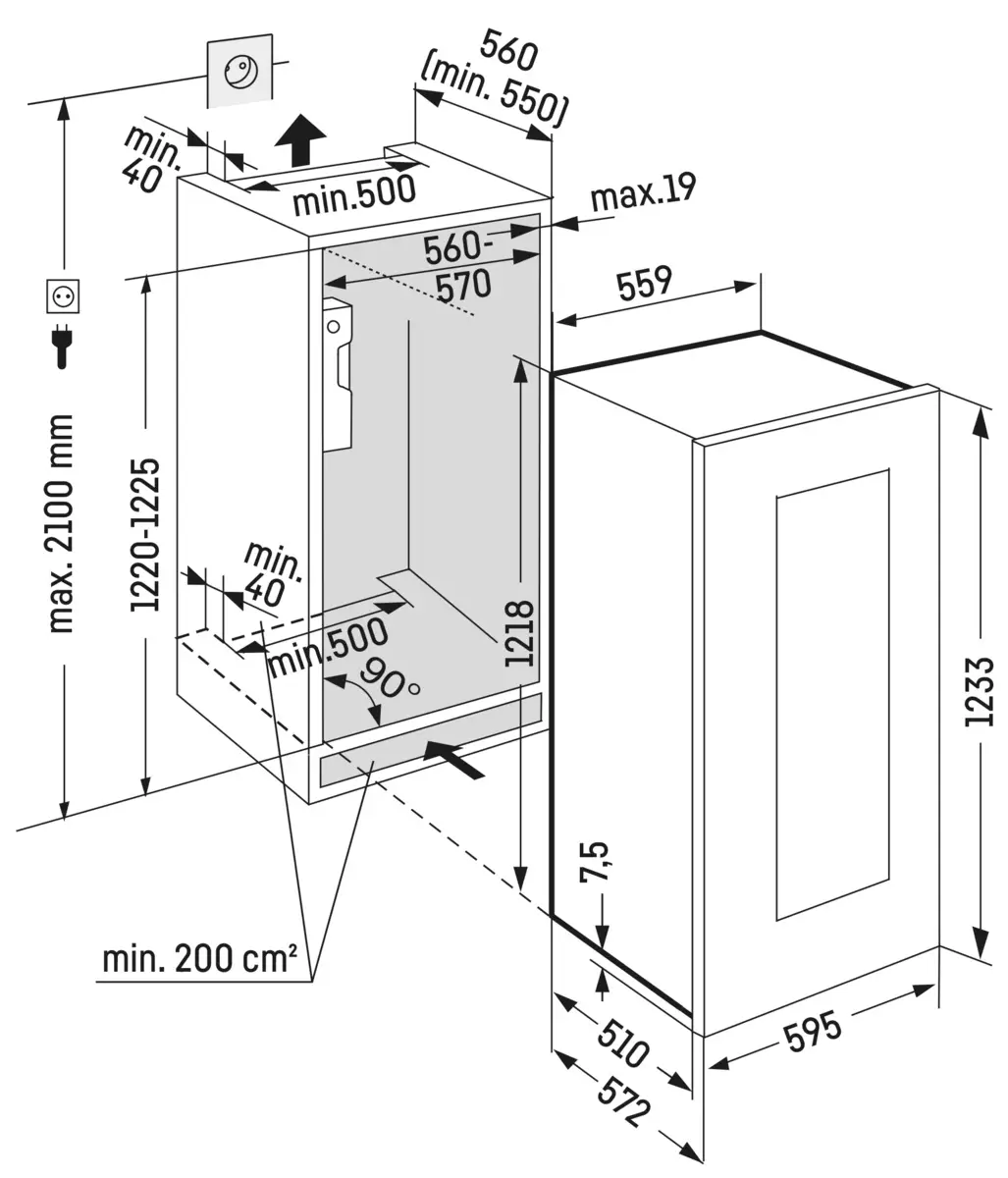 | Wymiary wnęki wysokość/szerokość/głębokość | 122 - 123,6 / 56 - 57 / 55,0 cm |