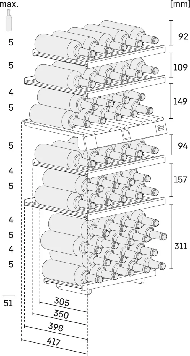 | Maksymalna liczba butelek typu Bordeaux o poj. 0,75 l ** | 51 |