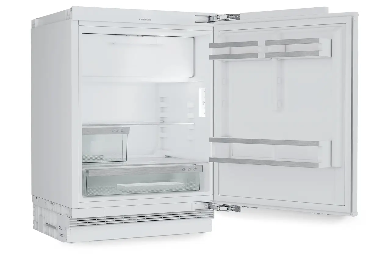 Liebherr URc 3701 Pure to funkcjonalna chłodziarka do zabudowy podblatowej, która łączy kompaktowe wymiary z dobrze zorganizowanym wnętrzem i praktyczną 4-gwiazdkową komorą zamrażarki. Model o pojemności 115 l sprawdzi się w nowoczesnych kuchniach, aneksach i wszędzie tam, gdzie liczy się wygodne przechowywanie świeżej żywności w zabudowie podblatowej.