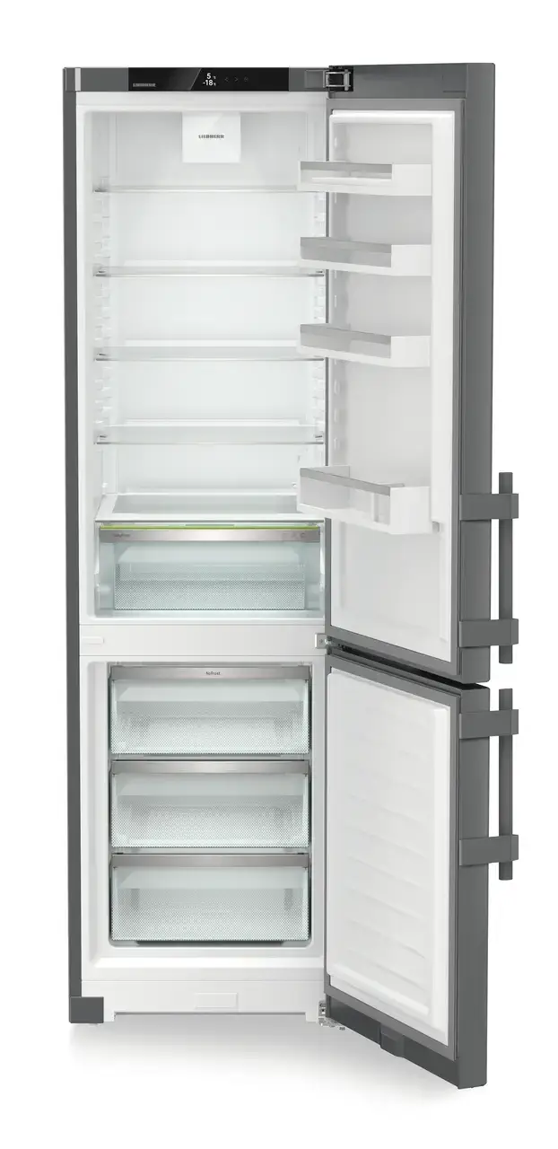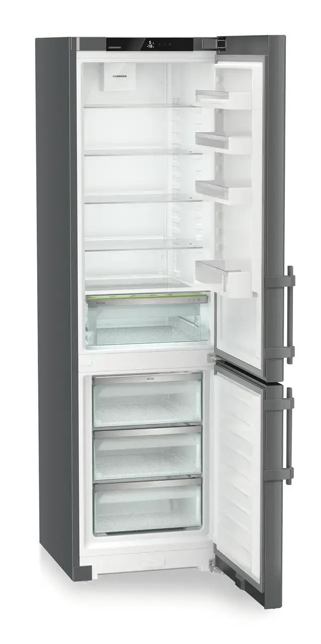 Liebherr CNdgc 5713 Pure NoFrost to pojemna i nowoczesna chłodziarko-zamrażarka wolnostojąca, która łączy technologie EasyFresh, NoFrost i DuoCooling z eleganckim wykończeniem DarkGrey. Model o pojemności 371 l został zaprojektowany z myślą o wygodnym przechowywaniu dużej ilości żywności, wysokiej kulturze pracy i nowoczesnym wyglądzie.
