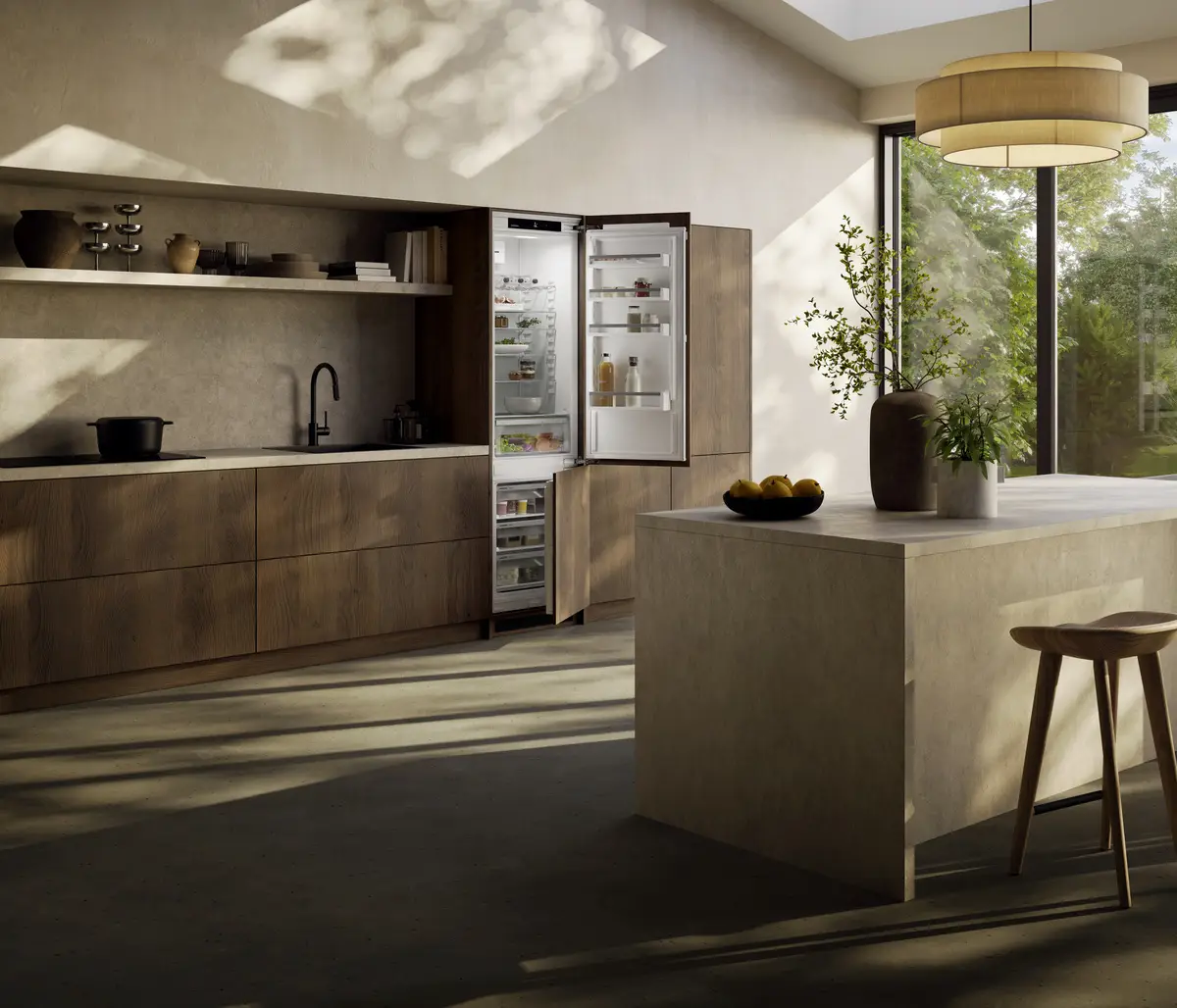Liebherr ICNd 5603 Pure EasyFresh NoFrost to pojemna chłodziarko-zamrażarka do zabudowy zintegrowanej, zaprojektowana do nowoczesnych kuchni, w których liczy się świeżość żywności, wygoda użytkowania i cicha praca. Model do niszy 194–195 cm oferuje dużą pojemność całkowitą 284 l oraz stabilne i energooszczędne chłodzenie.